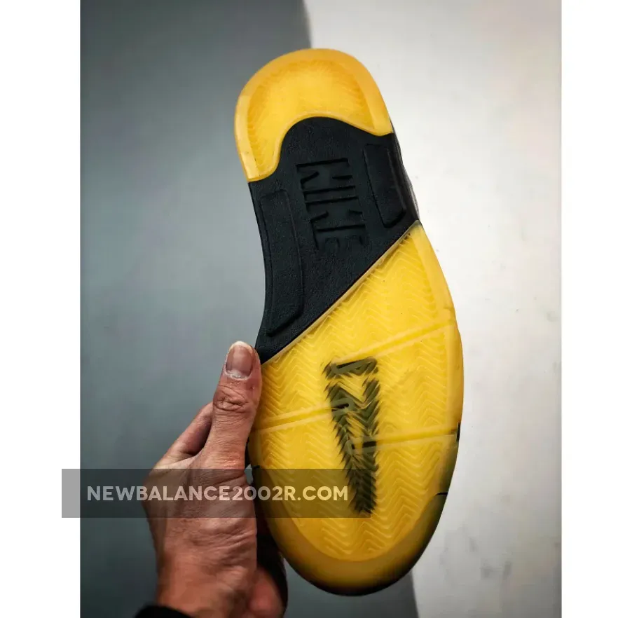 A Ma Maniere’s signature “A” appears in monogram form on the AJ5’s netting as well as the shoe’s lining. The pre-aged look is also seen on the yellowed outsole with the Jumpman appearing to finish off the sneaker.