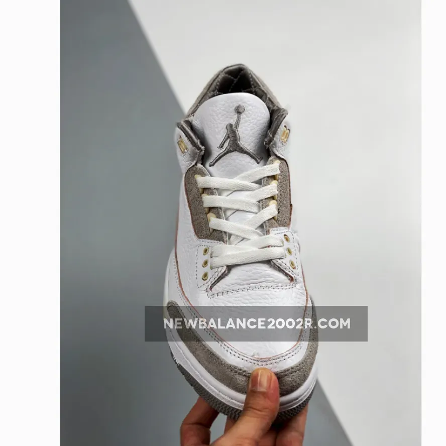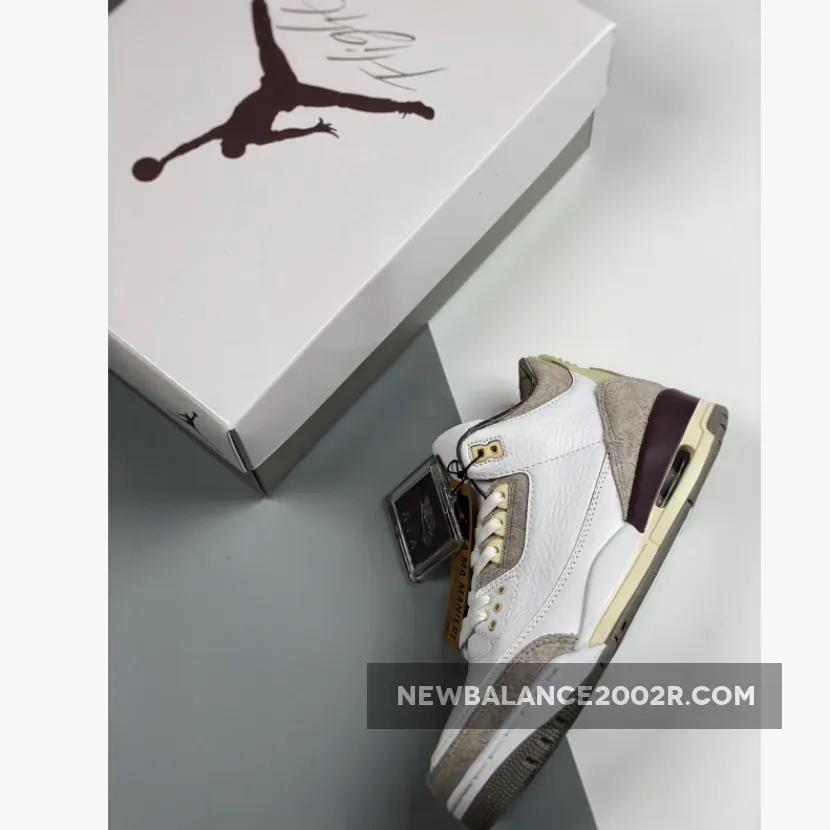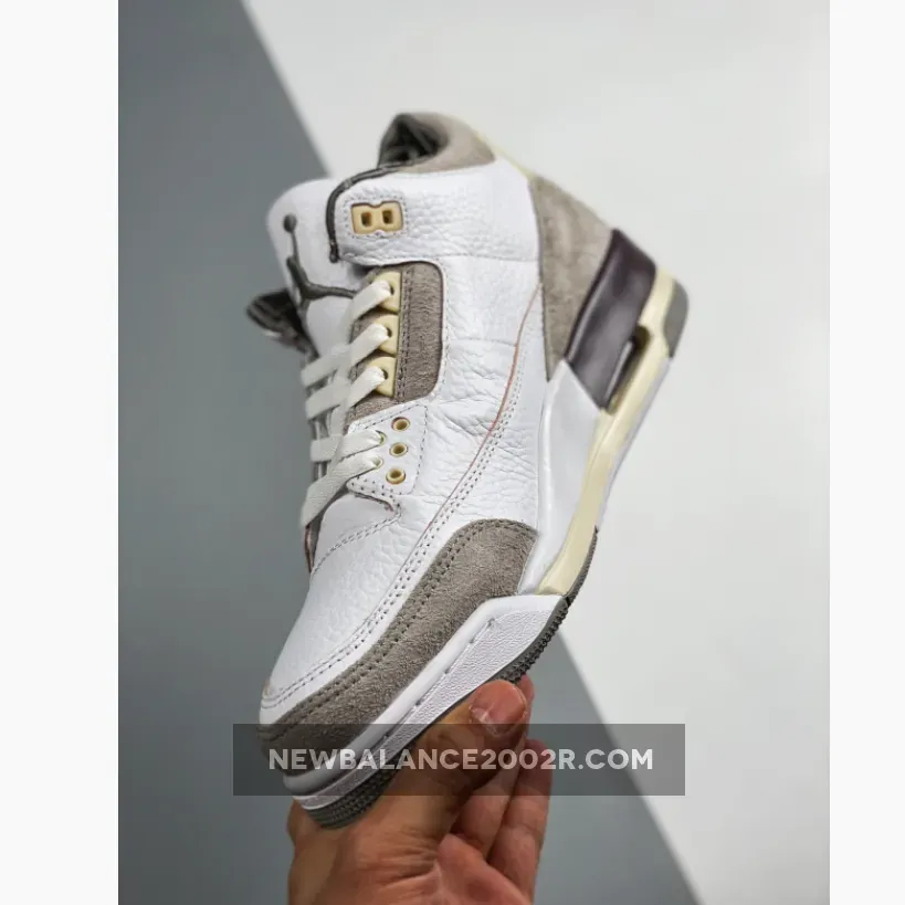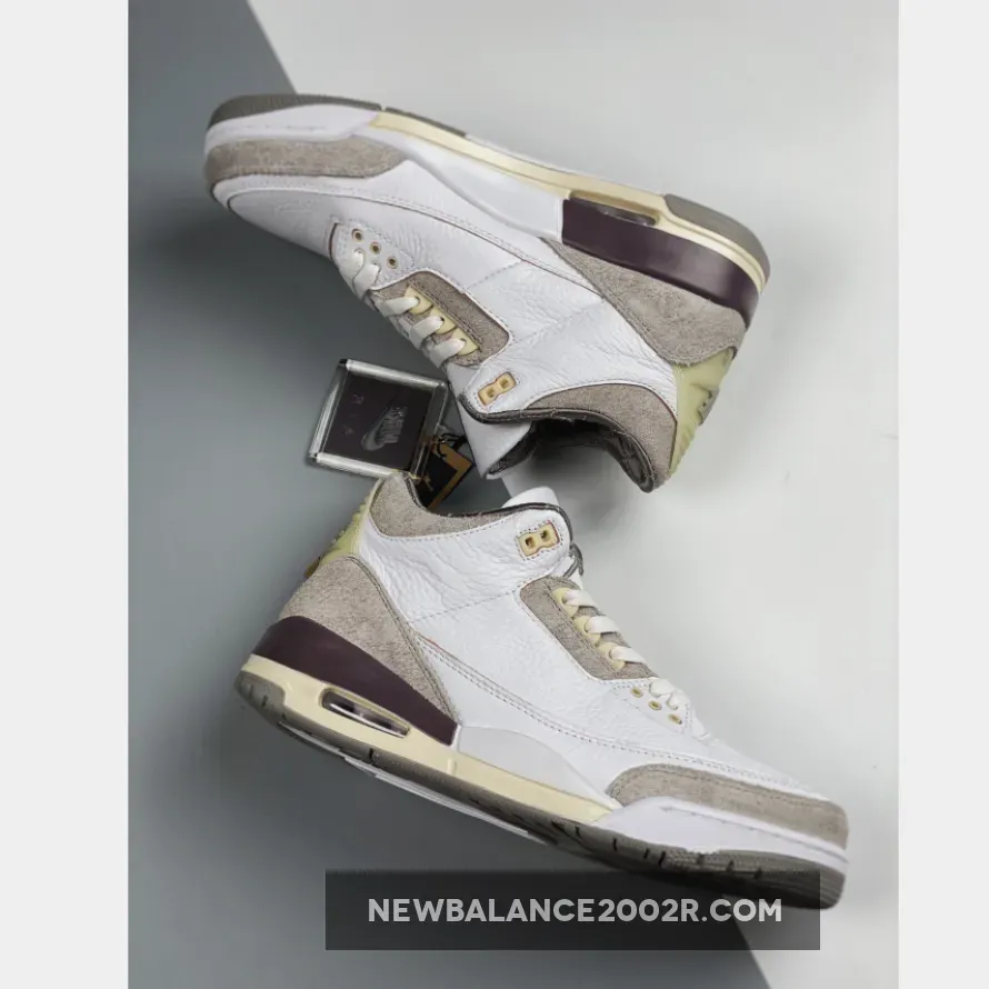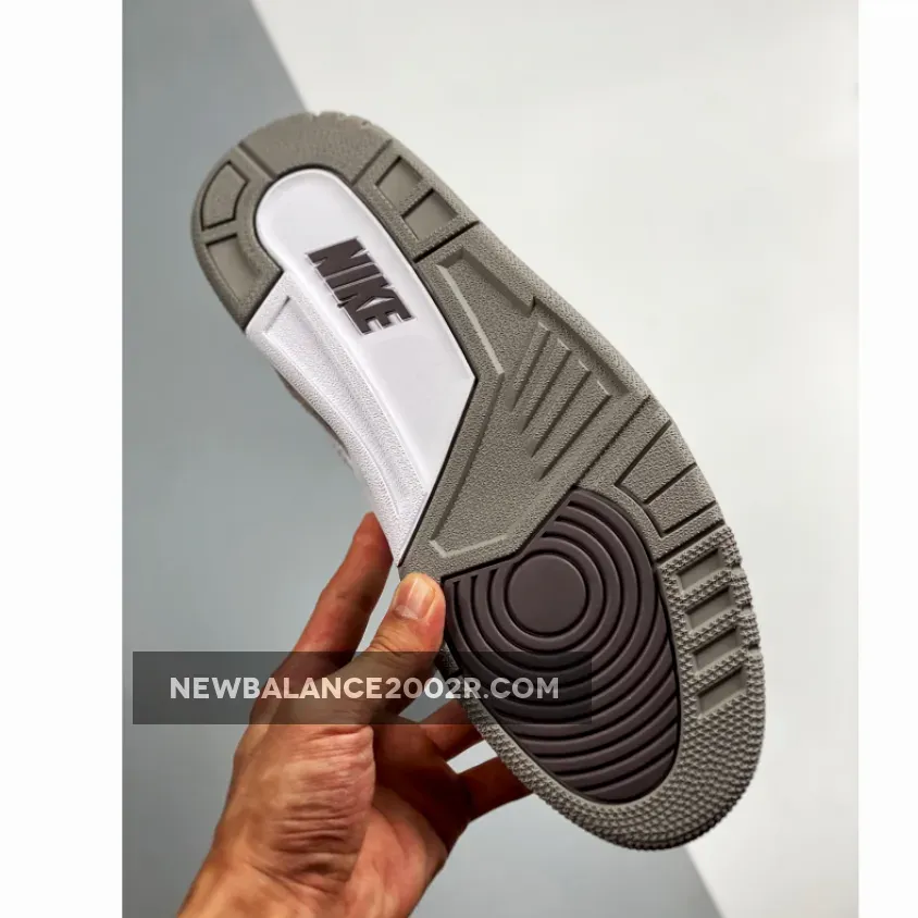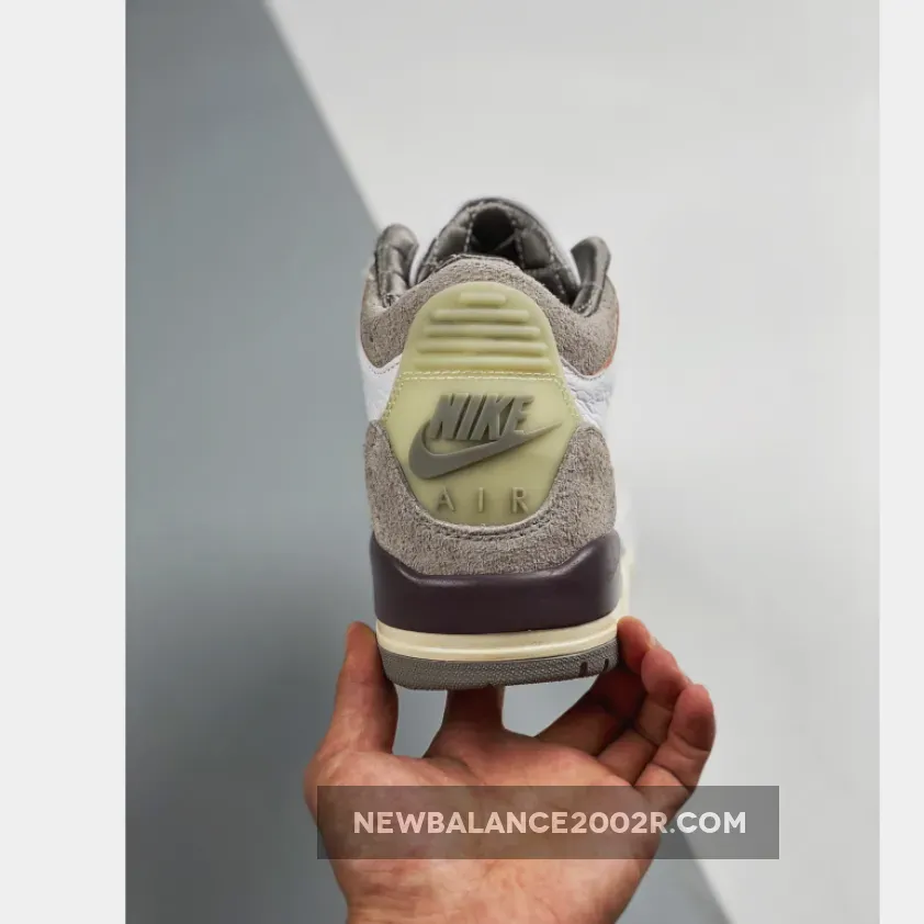 Done up in a White/Medium Grey/Violet Ore colorway, the AJ3 proffers an elegant look with its supple tumbled leather and shaggy suede construction. It also boasts unique detailing like co-branded tongues, artfully-aged heel tabs with OG Nike Air hits and even a quilted satin sockliner.the tongue tab wears the Nike Jumpman logo and branding with pride. Underfoot, visible Air in the heel of the midsole provides cushioning, giving way to a rubber outsole for traction.