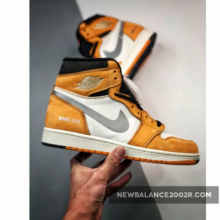 This Air Jordan 1 comes dressed in a Light Curry, Cardinal Red, Sail, and Black color combination. Just like the other pairs, this one features Gore-Tex on the upper while combining textile and nubuck. Next, 3M reflective Swoosh logos land on the side while Nike Air branding adorns the woven tongue labels. Other highlights include Gore-Tex on the lateral heel and a Yellow with Black translucent areas that complete the look.