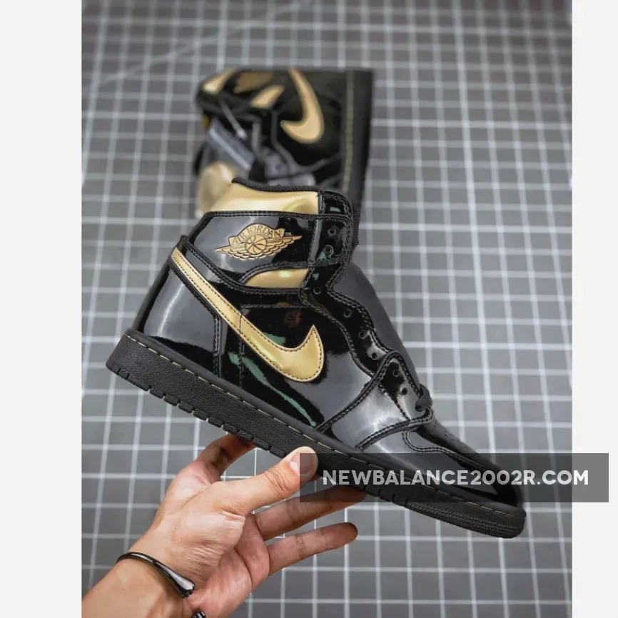 The Jordan 1 High OG Patent Black Gold is a clean new version of the legendary Air Jordan 1 silhouette that’s been a popular option for sneakerheads ever since 1985. As Michael Jordan’s first-ever signature shoe, the AJ1 was designed by Peter Moore and originally launched in high, mid and low-top versions, with all three still popular today.Crafted from shiny patent leather, the uppers take on a mainly black look with gold details really making the design pop. Nike’s Swoosh logo runs across both the lateral and medial sides, with other branding coming in the form of Nike Air logos at the tongue and the wings logo on the collar. Other notable features include a heavily padded ankle section and the signature perforated toe box. If you’re looking for a fresh pair of daily beaters then these could just be the pair for you.The Jordan 1 High OG Patent Black Gold has yet to receive an official release date, although we expect them to drop sometime this year.