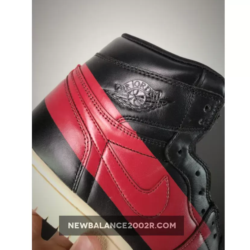 One of the upcoming colorways comes dressed in a Black, Gym Red and Muslin. Highlighted with Black leather across the upper while a large Red line is seen across the side which could be linked to the ‘Banned’ theme. Following we have Nike Air branding on the tongues, Black wings logo and Muslin across the midsole and outsole.