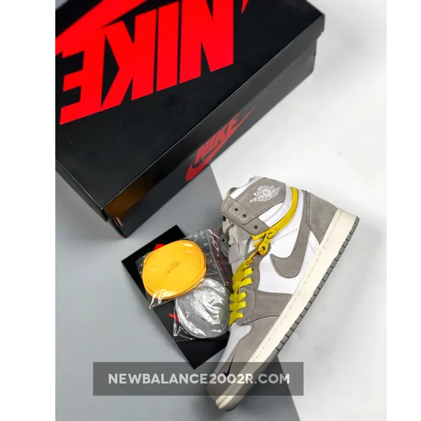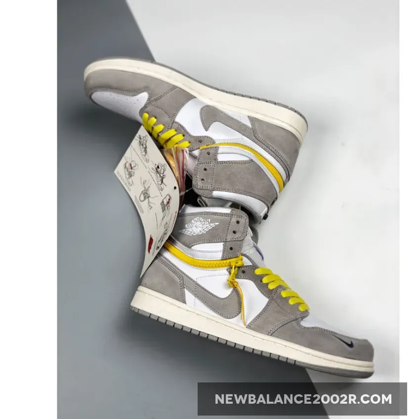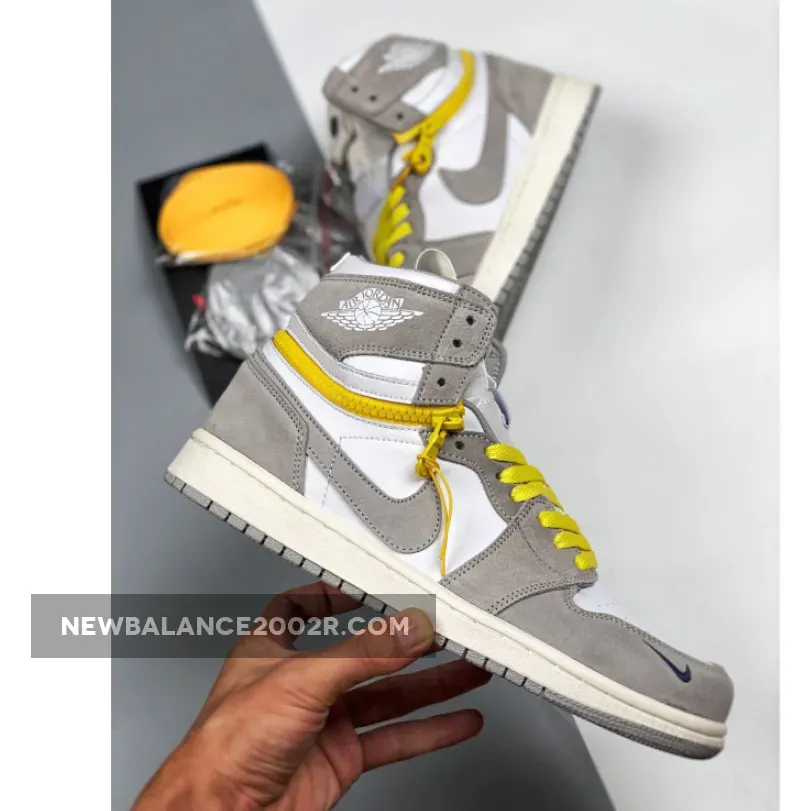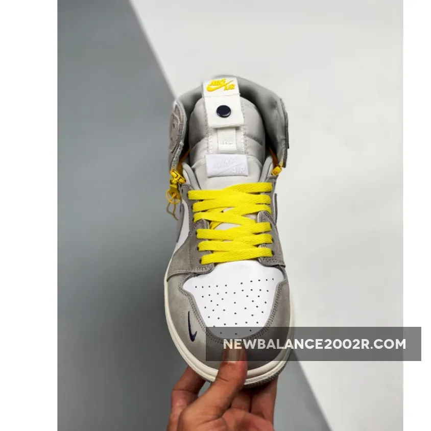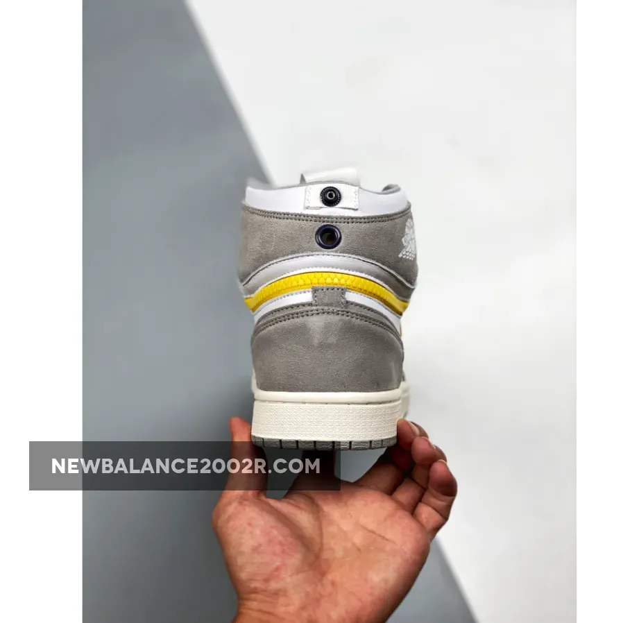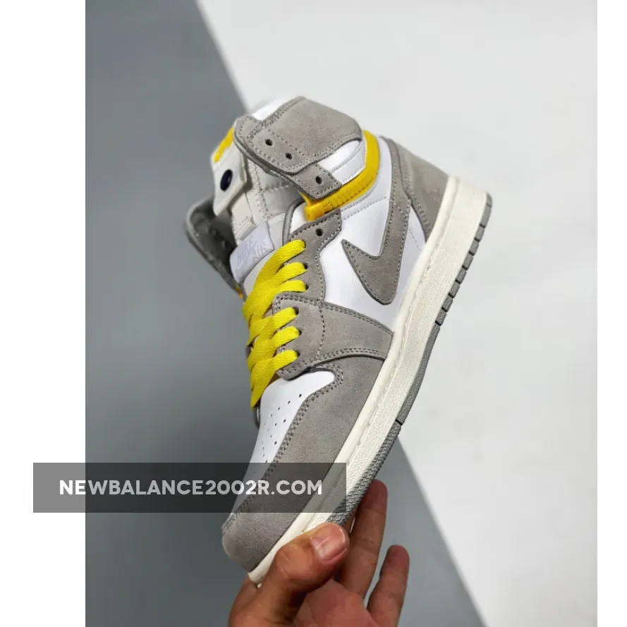 this Air Jordan 1 Switch comes dressed in a White, Light Smoke Grey, Sail, and Tour Yellow color combination. Breaking this pair down, it comes constructed with suede and leather, while White adorns the panels, collar, toe, and Swoosh. Furthermore, Light Smoke Grey appears on the ankle, eyestay, forefoot overlay, Swoosh, and wraps the toe and heel. Yellow appears on the laces, zipper, and heel pull tab. Finally, a Black mini Swoosh on the toe, a Sail vintage-like midsole, and a Grey rubber outsole complete the look.