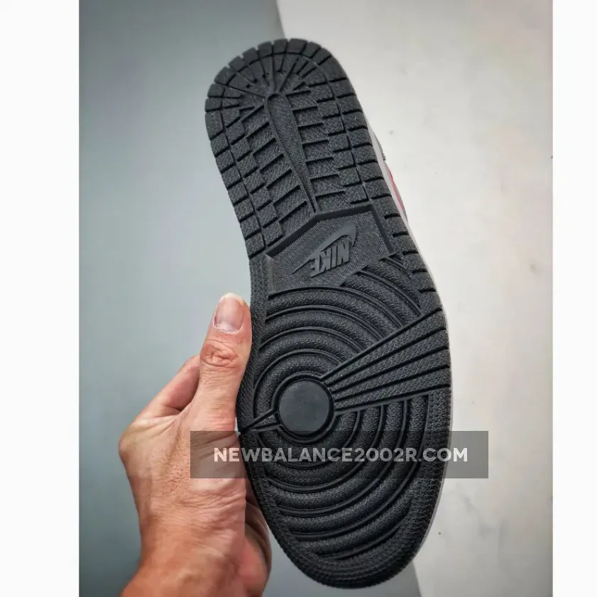 Amid the monochromatic play, a clean white midsole brightens the sole unit, adding a touch of clarity to the design. Yet, the real scene-stealer is the bold crimson accents adorning the profile swooshes, heel tab, and the iconic Jumpman logo on the tongue. This dash of red isn’t merely aesthetic; it’s a salute to the legendary Chicago Bulls era, subtly intertwined within the Air Jordan lore. The hint of red amidst the monochrome setup embodies a touch of passion, hinting at a rich legacy of athletic triumphs.
