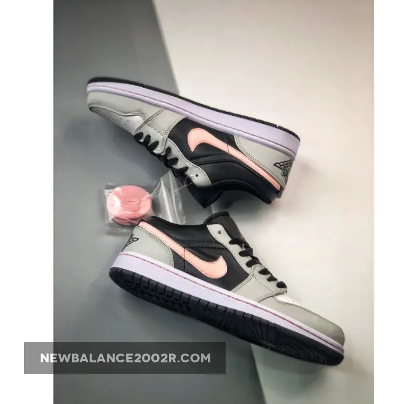 One of those includes this new makeup dressed in a mix of Black, Grey, Pink, and White. This offering of the low-top Air Jordan 1 features a White toe box with Black on the side panels, tongues, laces, liner, Wings logo and rubber outsole. Highlighting the shoe are Pink contrasting accents on the branded areas, Swooshes, and stitching along the White midsole to complete the design.