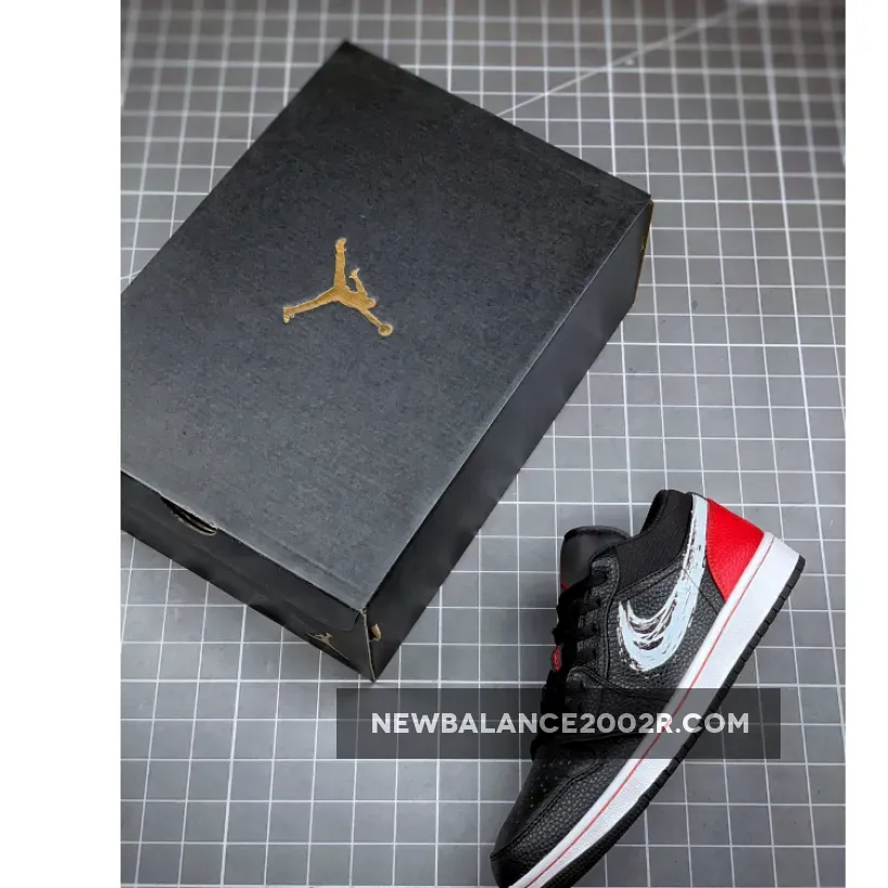 Unleash your inner artist with the brand new Jordan 1 Low Brushstroke Swoosh. A literal stroke of genius, this colourway combines a contemporary silhouette with a classic art form, resulting in a truly unique release that definitely should not be missed.Crafted from an exquisite tumbled leather throughout, the black upper acts as a canvas for a clean white Nike Swoosh that elegantly glides across the lateral and medial side panels. The legendary Jumpman silhouette is finely embroidered onto the tongue, while complementary bold red hues arrive at the heel, where you’ll also find the AJ1’s signature winged basketball motif that’s almost as iconic as the shoe itself.What is there not to love about the Nike Air Jordan 1 Low Brushstroke Swoosh? Part of the ever so popular Brushstroke Pack, make sure you keep it locked at Our Store Supplier if you a pair in your current collection.