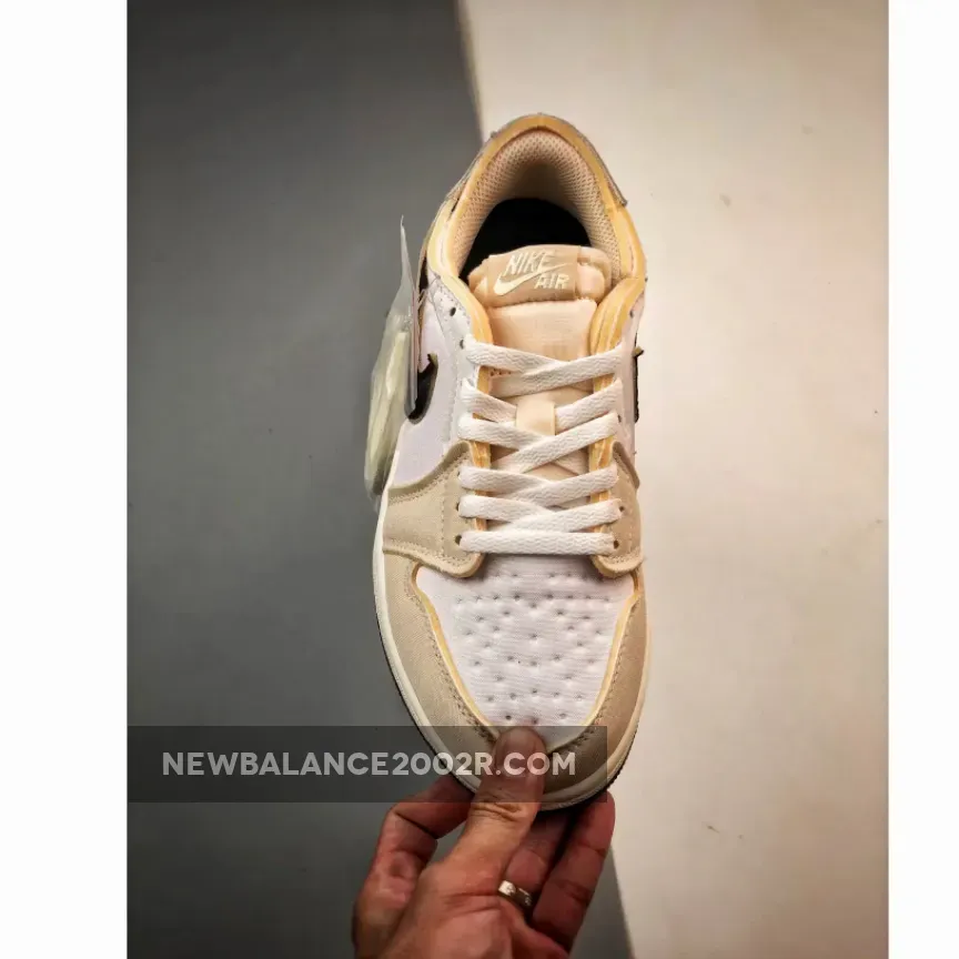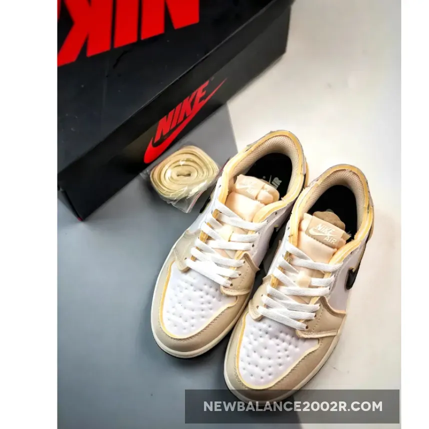 The Jordan Brand’s streamlined version of its flagship shoe, the Air Jordan 1 OG EX, has a fresh variation in creamy hues punctuated by black. Check out the Air Jordan 1 Low OG EX “Coconut Milk”.This low-cut AJ1 OG EX boasts a sensible, stripped-down design with a water resistance feature. The upper shows off a deconstructed style, with exposed foam edges to give it a 3D aesthetic. A crisp white base is accompanied by warm sail overlays, a tan heel counter and bold, black signature profile Swooshes on both the medial and lateral mid-panels. The tongue tabs feature white-on-beige branding and the black insoles show off a classic sail-coloured Nike logo. The suede heel tabs, on the other hand, feature barely-there white Wings logos.