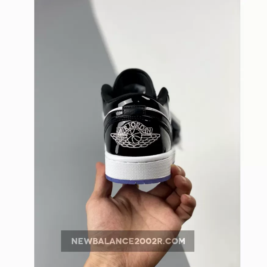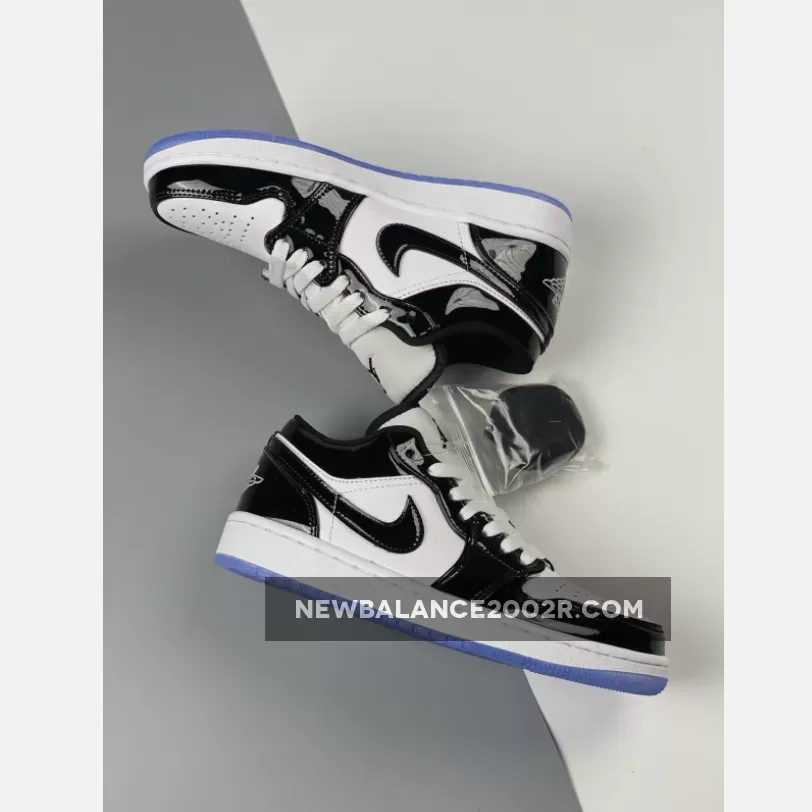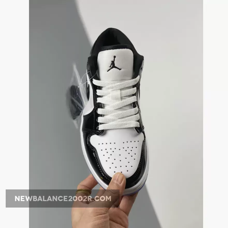 Sleek but eye-catching, the Air Jordan 1 Low Concord White Black features a simple monochromatic design that’s truly versatile. It starts with a smooth white leather base which covers the quarters and perforated toe. Meanwhile, shiny black patent leather overlays add reinforcement and a stylish flair. Classic Air Jordan 1 Low details such as the padded tongue, lightweight midsole with comfy cushioning and durable icy outsole complete this release. A modern classic.
