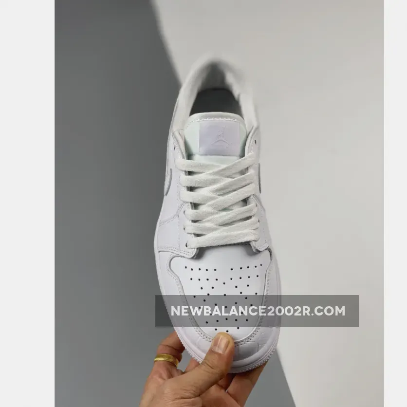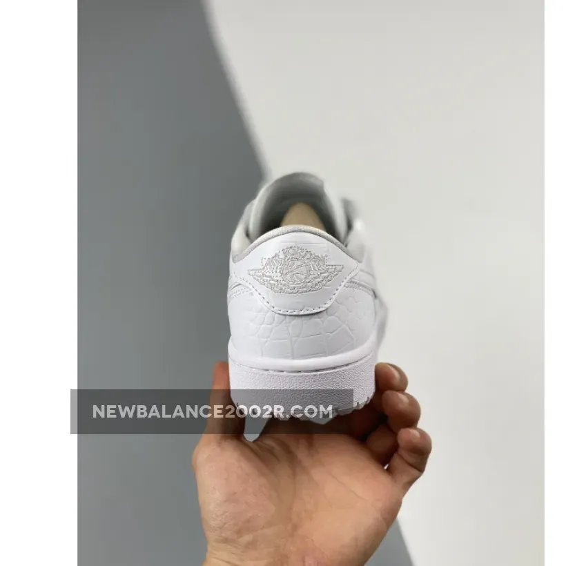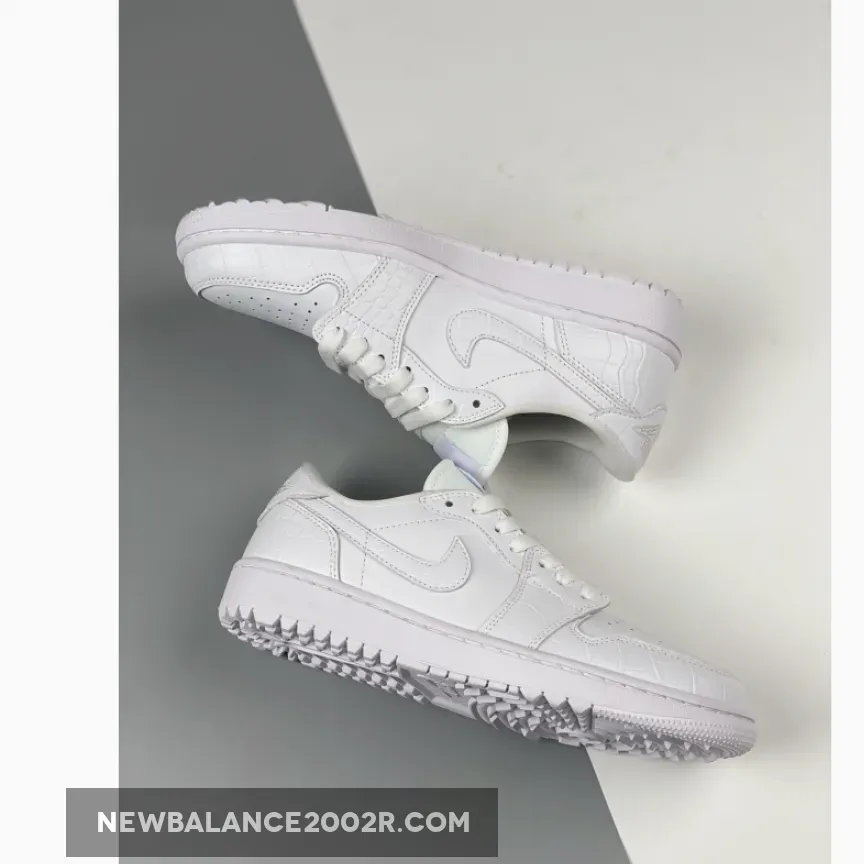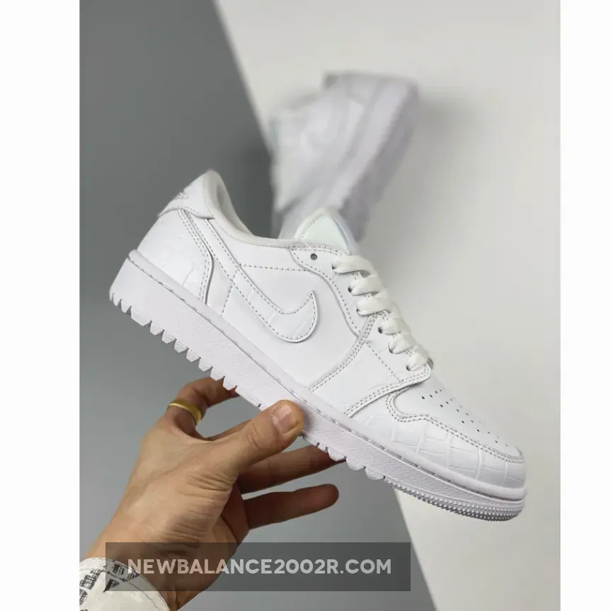The Air Jordan 1 Low is back in its golf makeup, now sporting a mock-crocodile upper to take a walk on the premium side. The a triple white look, using different materials to bring contrast. White leather on the base with faux Croc skin in white seen on the overlays and Swoosh. The tongue tag is seen in white with the Jumpman and GOLF branding in grey and the Wings logo stitched on the heel in white. Smooth leather can be found on the sidewall and toe box, forgoing the crocodile texture seen on the other panels, providing the flexion needed for the upper to remain comfortable. The midsole has also been given the golfing update with its new tread, containing aggressive lugs that balance traction and pivoting, a key element to anybody’s game.