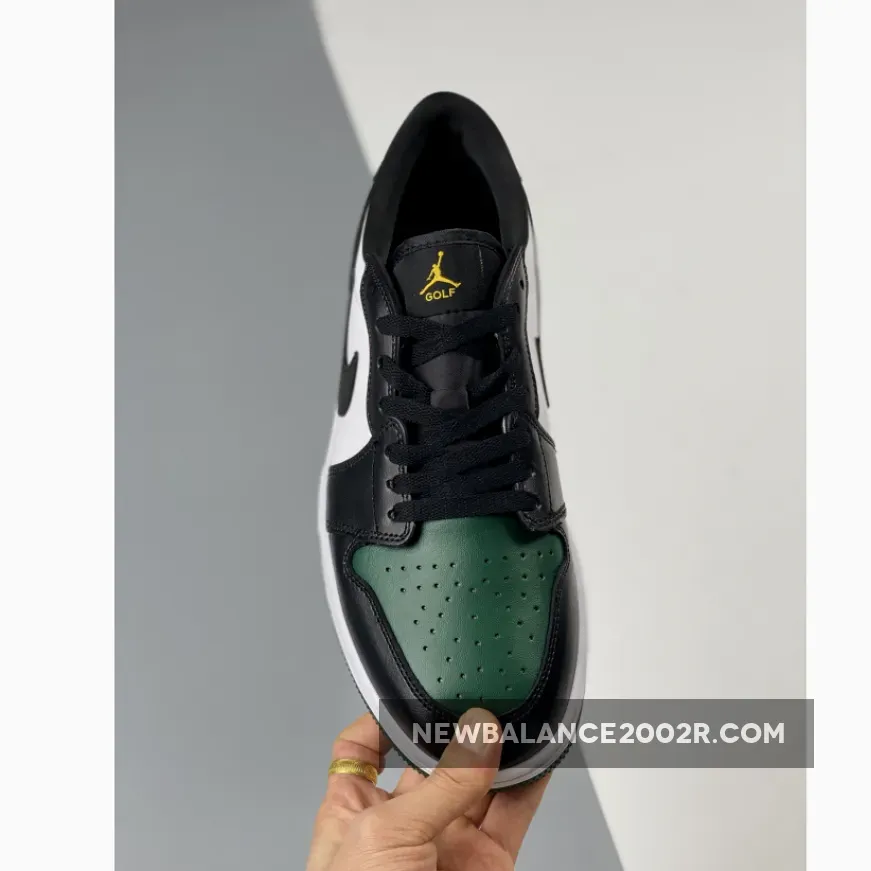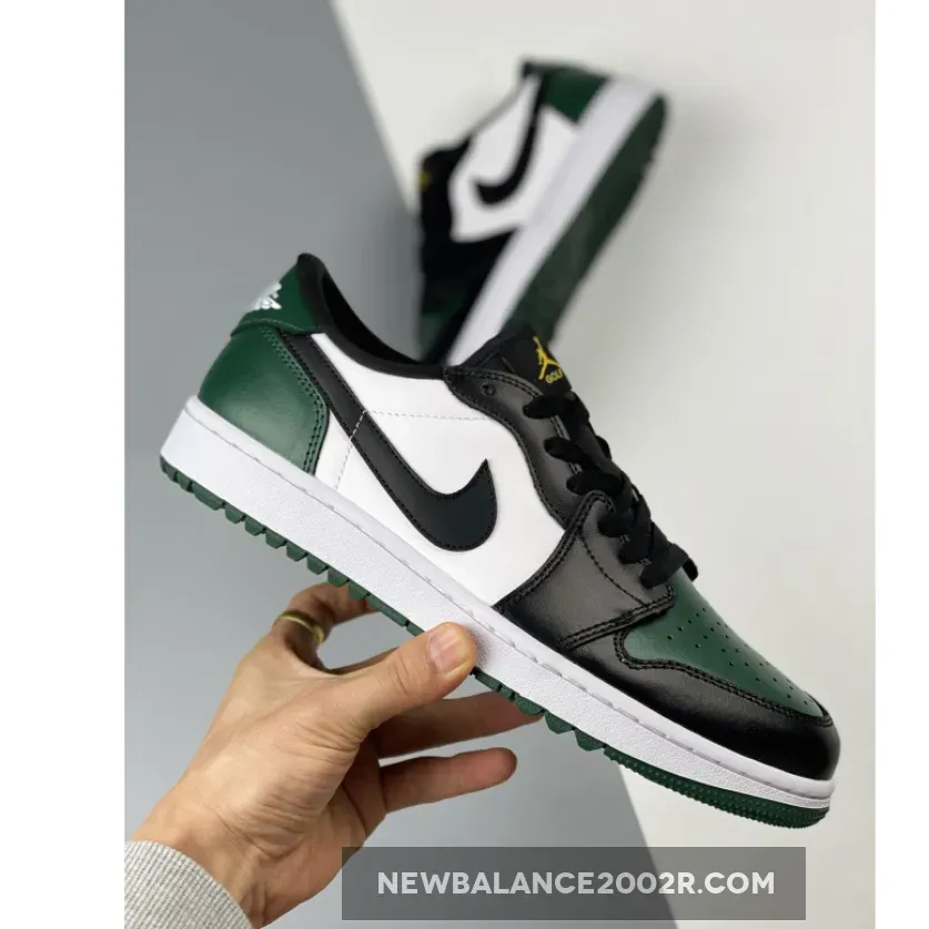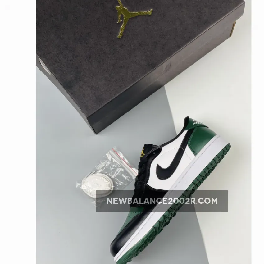 Michael Jordan is synonymous with basketball. But wait – the most famous basketball player of all time actually enjoys a nice game of golf. So, no wonder then that Jordan branched into golf footwear. Don’t worry, wearing the Air Jordan 1 Golf sneakers is not limited to golf courses. The latest iteration is the Air Jordan 1 Low Golf Noble Green – and it looks as great off-course, of course…The revered Air Jordan 1 silhouette receives a two-tone update in dark green and black. The eponymous noble green overlays cover the toe cap, as well as the heel counter and the heel tab. Matching the signature Swoosh, the mudguard and eyestays are black leather. The perforations in the toe cap ensure breathability while the soft lining provides optimal comfort. Taking their cue from traditional golf footwear, the collar patches feature visible stitching and provide the perfect backdrop for the signature Air Jordan logo. The Jumpman logo in eye-catching gold makes an appearance on the black tongue and contrasts boldly in white on the black insole. noble Green reappears on the rubber sole while the midsole is white.