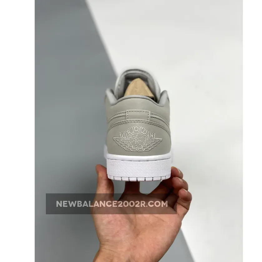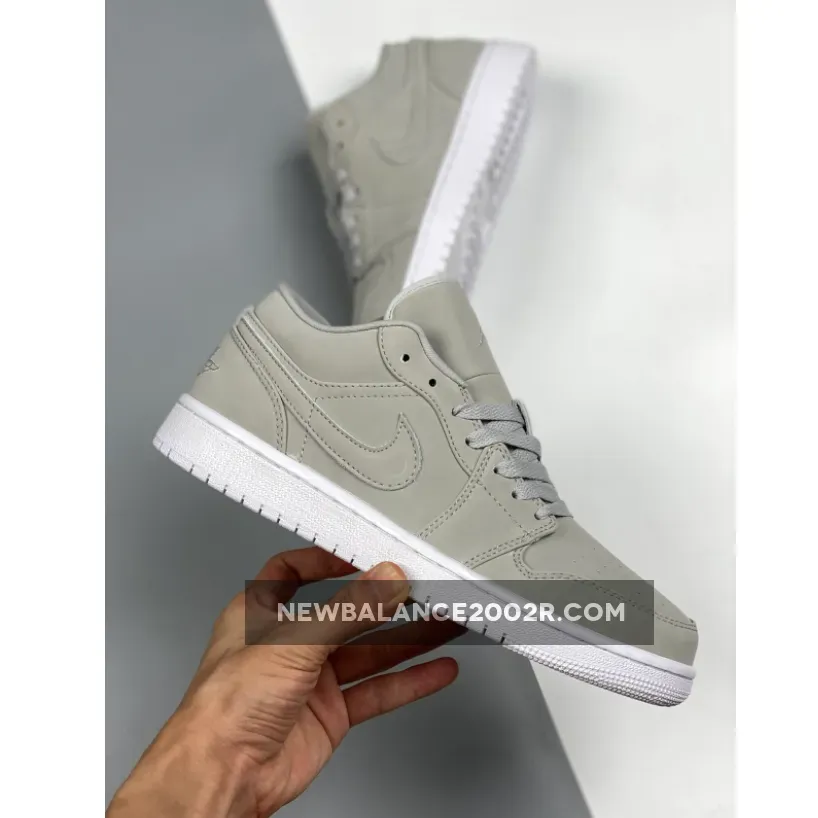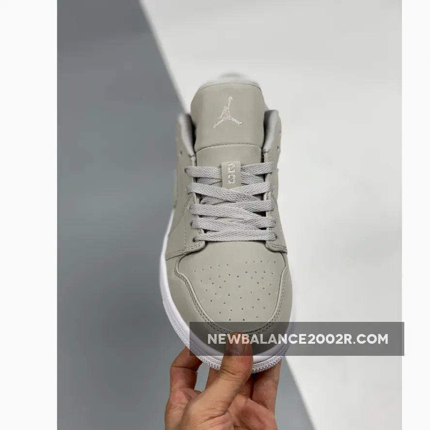 This offering of the low-top Air Jordan 1 features a full Grey Fog upper with matching tonal embroidery on the tongue and heel.