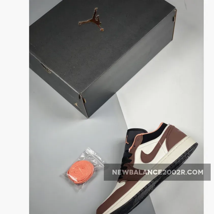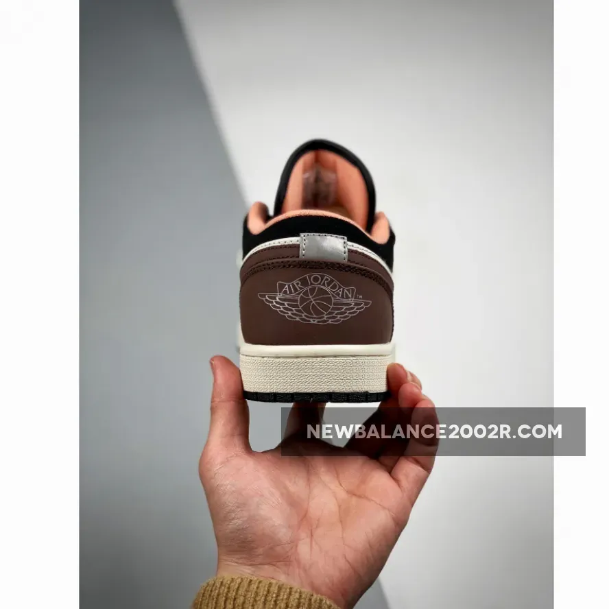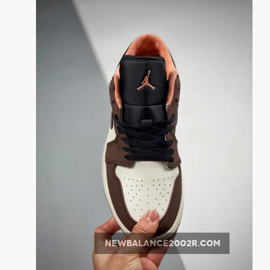 Opting for a low top construction, this Air Jordan 1 Low starts off with smooth white leather on the base which is then joined by mocha brown suede overlays on the toe, midfoot, eyestay, heel, and Swooshes. More contrast is then added with the inclusion of black on the tongue, laces, and ankle collar. To fancy things up a bit more we see A peachy pink collar piping and inner lining add a subtle variation to these sneakers. Similarly, the Jumpman logo on the tongues also flaunts the same peach colourway, matching the inner lining.
