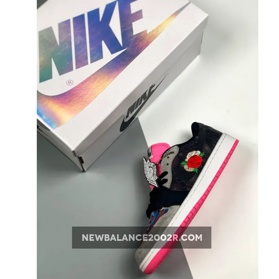 This Air Jordan 1 Low comes highlighted with Chinese graphics on the toe and side panels which includes embroidered roses on the medial Swoosh and on the toe of the right shoe. Pink runs across the tongue as well as on the lower part of the lateral eyestay and lace tips. Nike Air branding is placed on the tongue labels while a Black Wings logo on the heel finishes the look.
