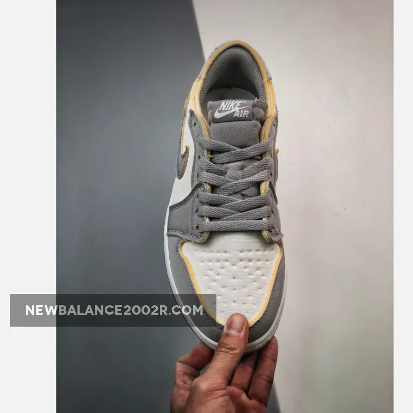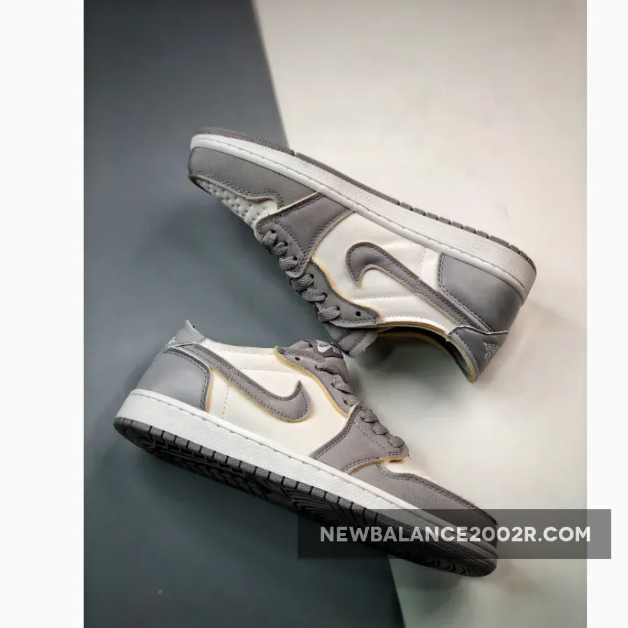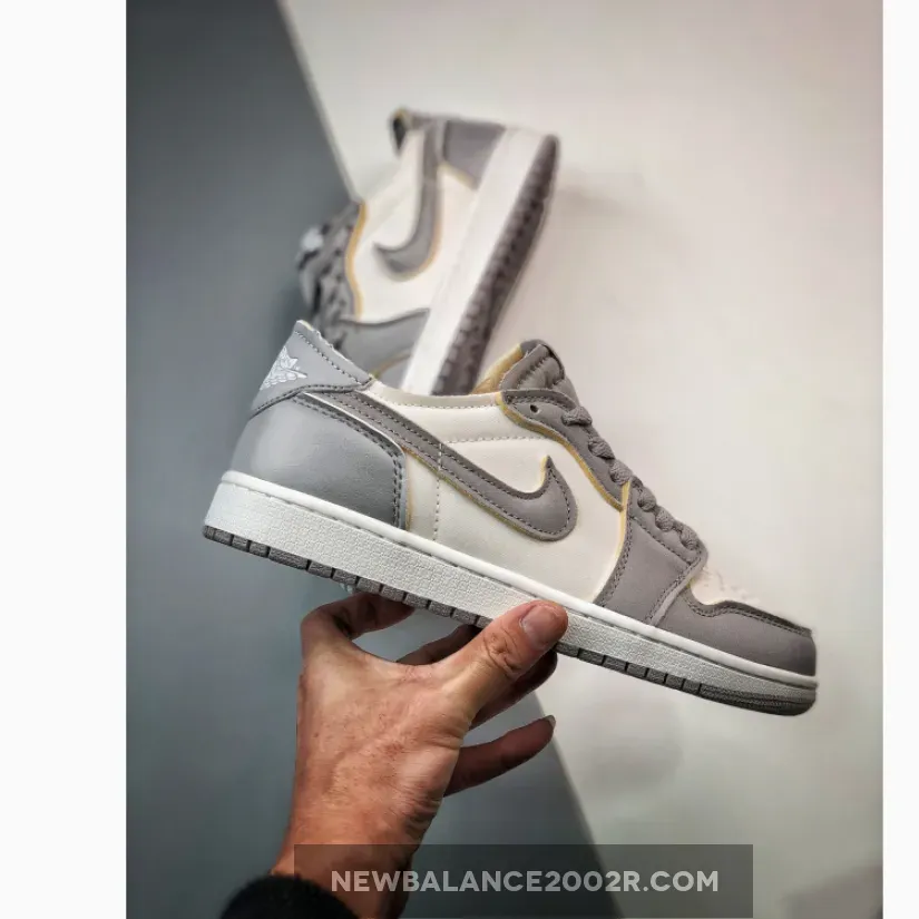 The deconstructed version of the standard Air Jordan 1, the Air Jordan 1 Low OG EX, has a new iteration in neutral white and grey. Get ready for the air Jordan 1 Low OG EX Tech Grey. This low-cut AJ1 OG EX has a “colourless” white textured base. The overlays on the toe cap, mudguard and eye stay panel are textured Tech Grey leather showing off exposed foam at the edges. The signature profile Swooshes on both sides of the shoe are the same textured leather and colour. The heel counter and heel tabs are the same colour and have the same exposed-foam treatment. The only difference with these panels is their smooth texture.