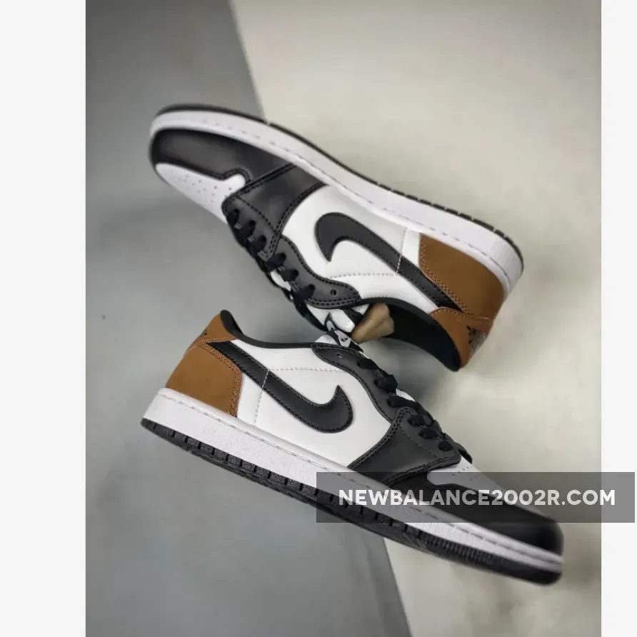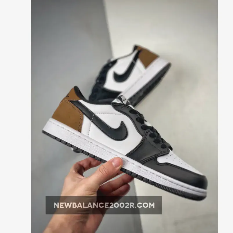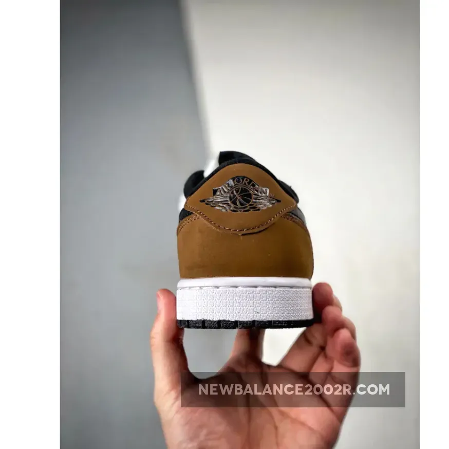 With its White, Black, and Palomino colorway and a design reminiscent of the 2020 “Mocha” Air Jordan 1 High OG, this low-top shoe offers a fresh look with its distinctive accents and branding.