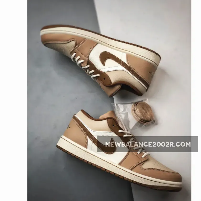 Crafted with an exquisite selection of tan and sail leathers, this Air Jordan 1 Low is anything but ordinary. Each piece of leather used in the sneaker’s construction offers its distinct hue and texture, creating a harmonious blend of natural colors that evoke the understated luxury of traditional dress shoes. Adding to this rich tapestry are brogue-style perforations at the toe, a nod to the meticulous craftsmanship and detail-oriented design that define high-end footwear.