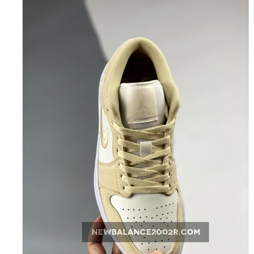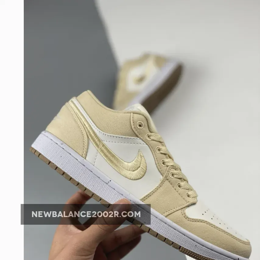 Solid colourway for the Air Jordan 1 Low. Love the combination of cream leather and tan canvas. Embroidered Swoosh is a nice touch. Perfect for casual summer outfits. Quality materials and design make this a must-have for any sneakerhead.