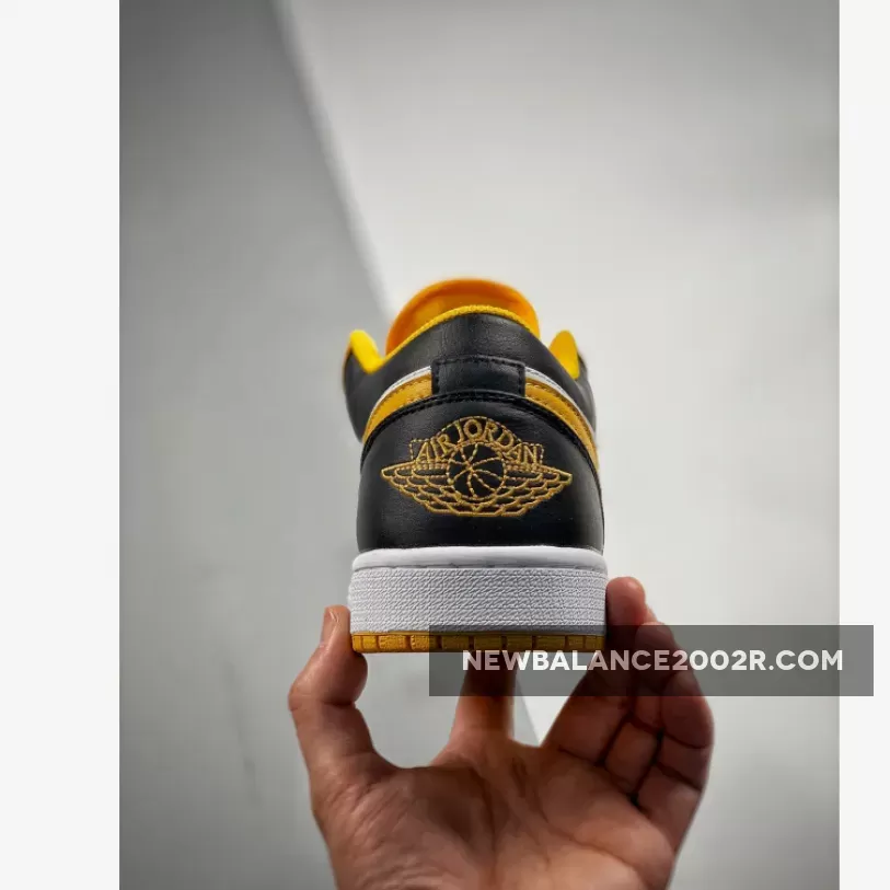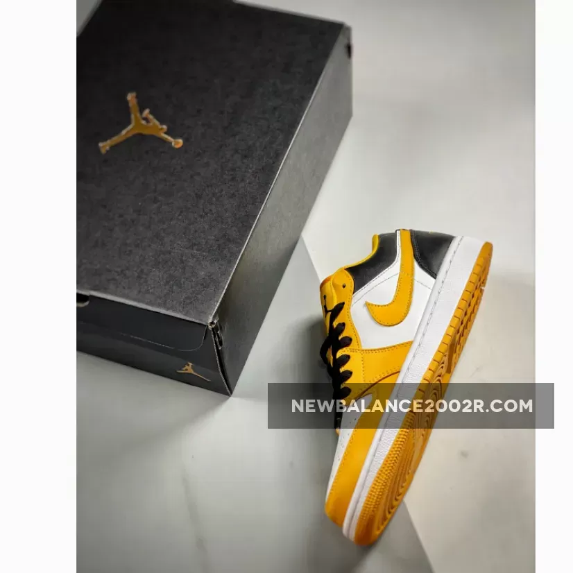 The Air Jordan 1 Low ‘Taxi White’ showcases a familiar color combination on a sleek silhouette modeled after the 1985 original. The low-top dons an all-leather upper, highlighted by a white foundation with amber forefoot overlays and a color-matched Swoosh. Contrasting black accents settle on the low-cut collar and heel overlay, marked with a Wings logo in yellow embroidery. Anchoring the sneaker is standard cupsole tooling, featuring white sidewalls and a yellow rubber outsole.