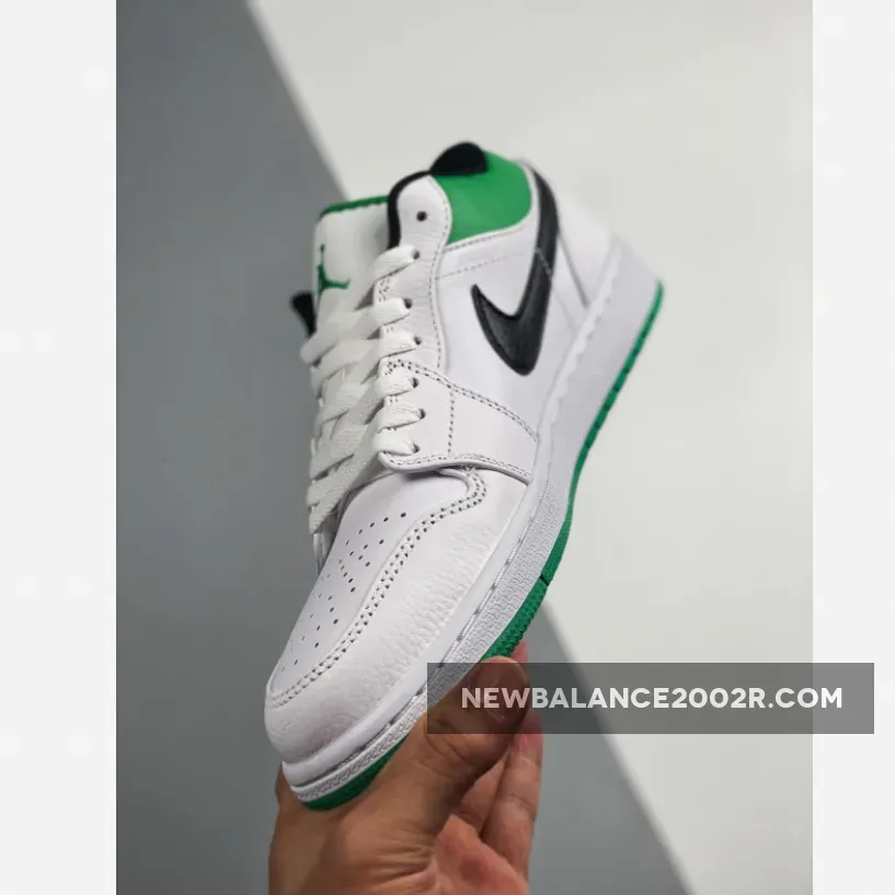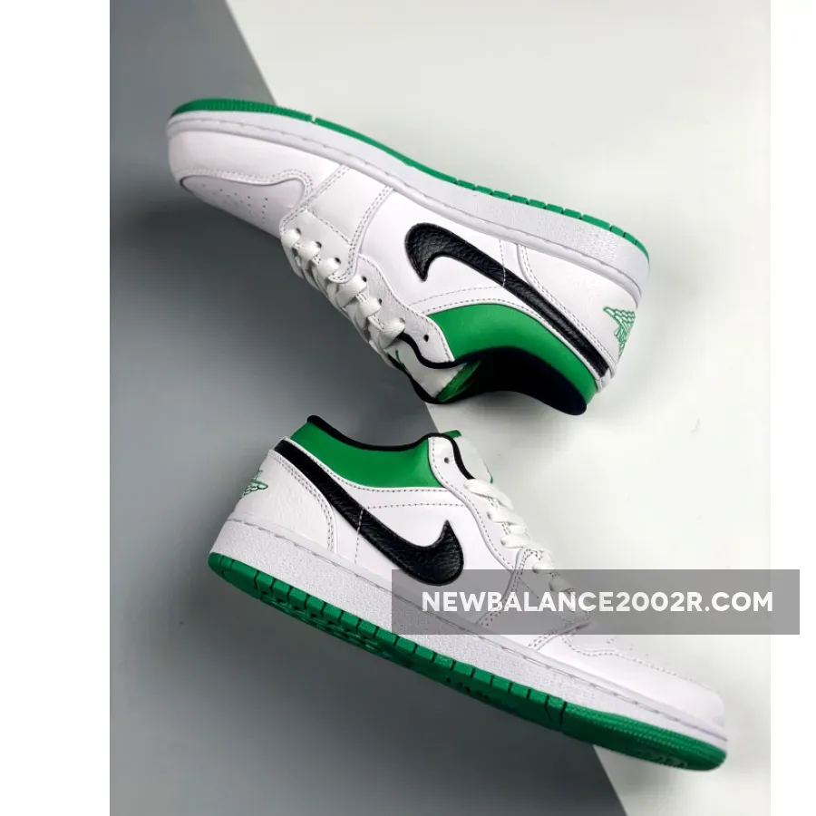 The first time sneaker world saw an Air Jordan 1 was back in 1982. It was Michael Jordan’s first-ever signature pair for the hardwood basketball court. However, times changed, and now the AJ 1 trainers for sports have become a prominent contender of trainers for running. You don’t have to play basketball to get this pair. Even if you plan to casually walk down the lane or enjoy an adventurous track ride, a Swoosh Jordan is the perfect option. And on top of that, this particular theme of Lucky Green White looks like it’s made for the spring/summer season. The white leather walls and green accents look gorgeous than ever. Follow our socials at FastSoleUK and check out some more upcoming releases from this series. For now, let’s focus on this one only. This one is a simple low-top version that takes away the feeling of bulky shoes and gives you lightweight comfort. Likewise, the colour palette lifts your mood with fresh colour arrangements. The crisp white leather construction goes almost tonal all over, except for the leather collar, brandings, and outsole. Lucky Green hues pop from these areas, including the collar piping. Since the entire silo goes white and flaunts green accents, you’d think the iconic Nike Swoosh would be some shade of green too. But not when it’s a Jordan boot. Following the surprising tricks, this Air Jordan 1