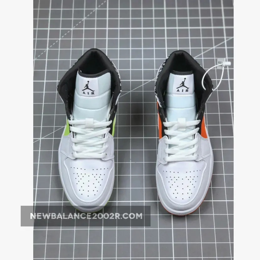 this mid-top iteration of the Air Jordan 1 comes with White leather on the base while the same shade is applied to the Swoosh logos. Both White and Black form a unique graphic on the ankle which is similar to composition notebooks.