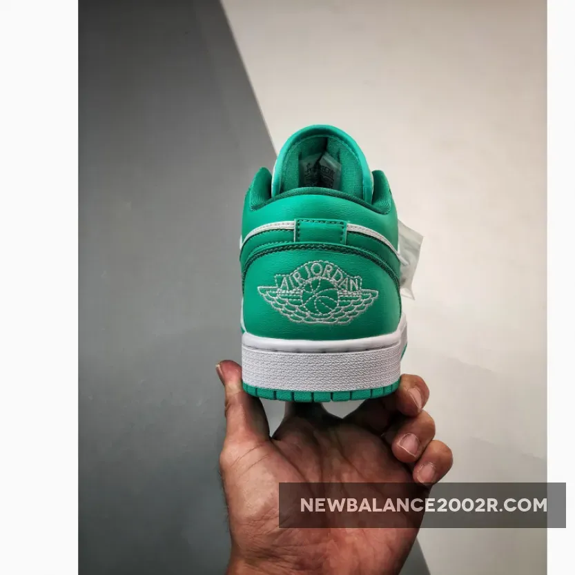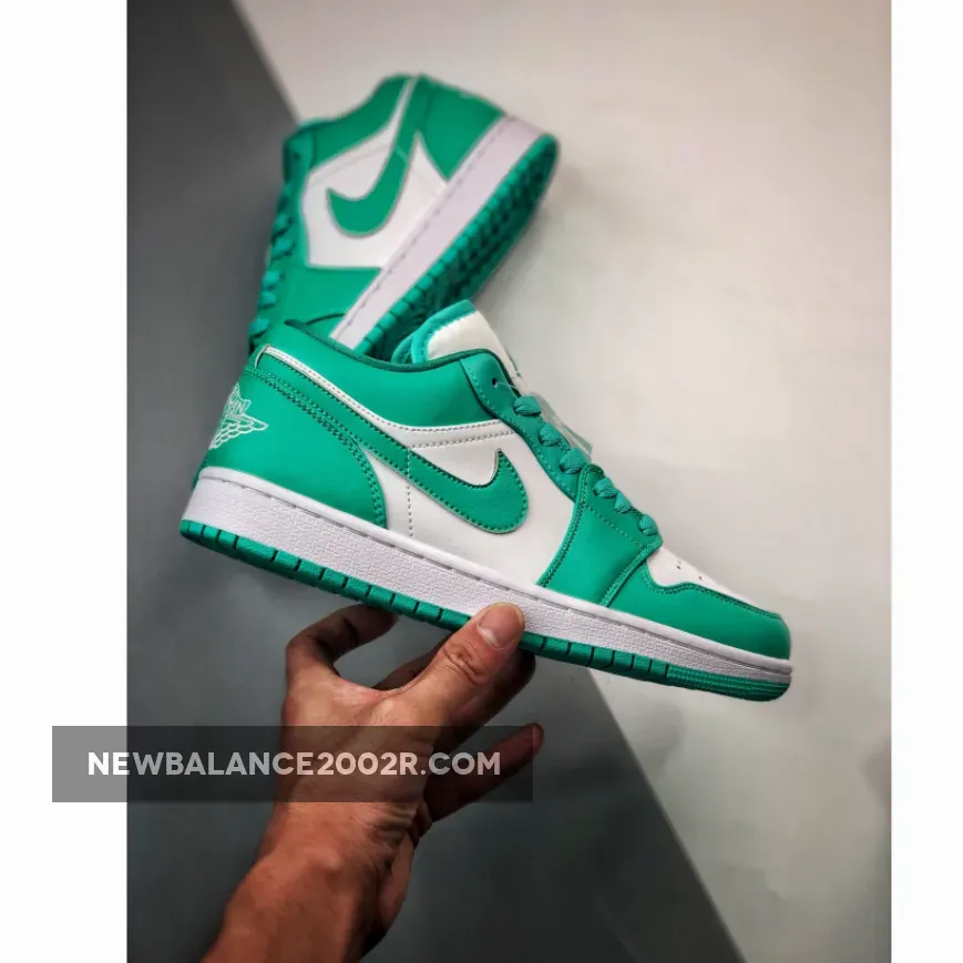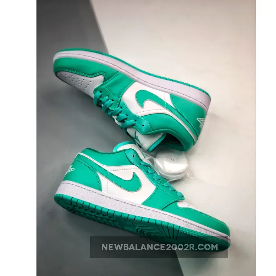 This low-top Air Jordan 1 comes constructed with White leather on the base while Turquoise appears on the overlays, Swoosh logos, laces, liner, and rubber outsole. Finishing the simplistic look, White adorns the tongues, Wings logo, and midsole.
