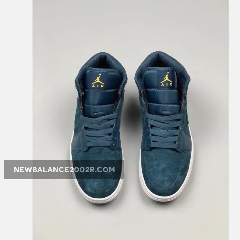 Dressed in a Armory Navy, White and Electrolime color scheme. This Air Jordan 1 is constructed with a mix of suede and leather, along with Bright Yellow touches on the tongue atop a clean White sole.