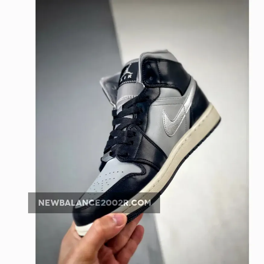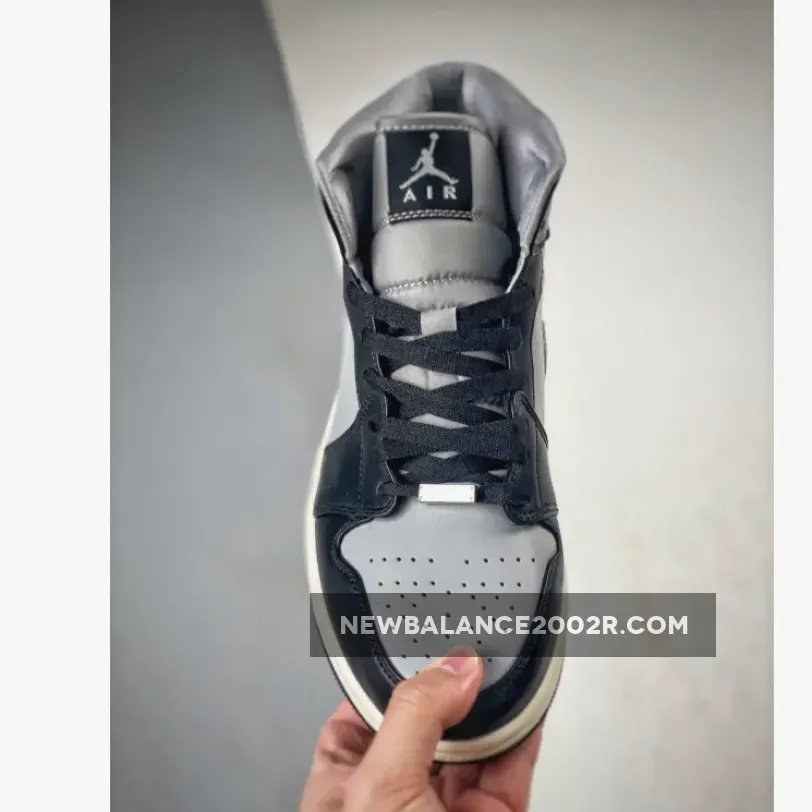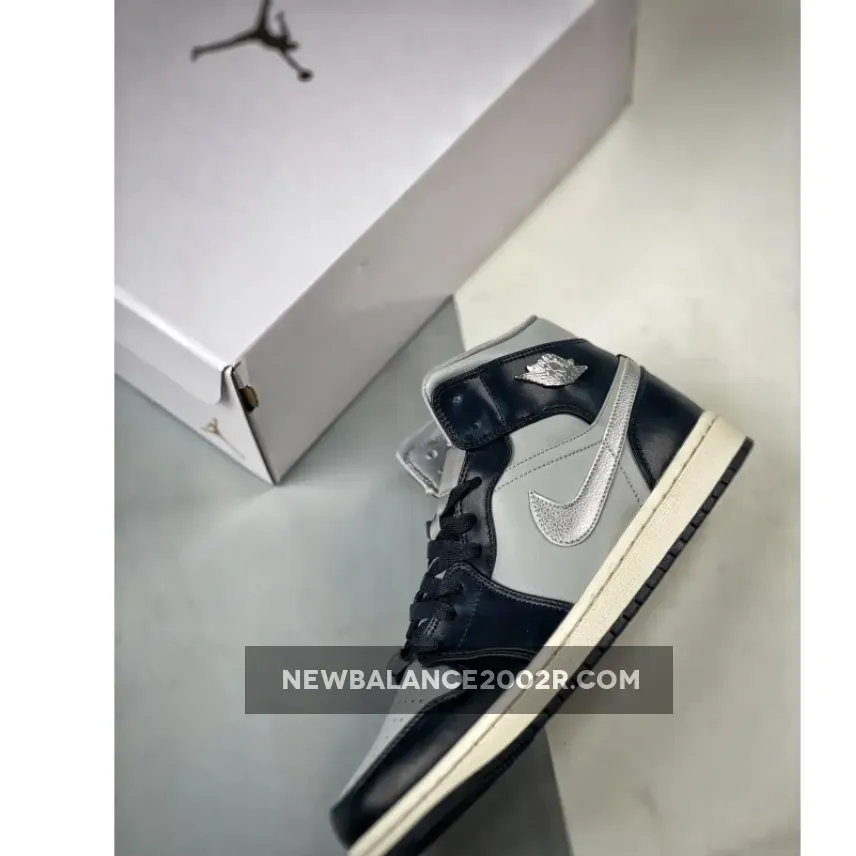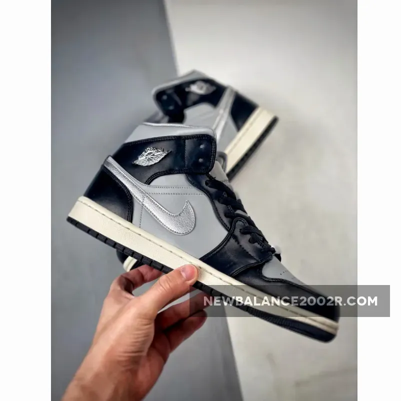 The shoe showcases a sleek ensemble of colors, including Black, Metallic Silver, Light Smoke Grey, and Sail. Crafted with luxe full-grain leathers and mesh lining, the AJ1 Mid SE “Black Chrome” provides both comfort and durability. The Light Smoke Grey leather upper creates a stylish tonal backdrop, while the striking Black leather overlays add glossy contrast with a patina-like finish. Notable additions include the Chrome Wings on the lateral ankle and lace dubrae, adding a touch of hardware-inspired flair. The vintage charm is further enhanced by the Sail midsole, complemented by a Black rubber outsole that completes the design.