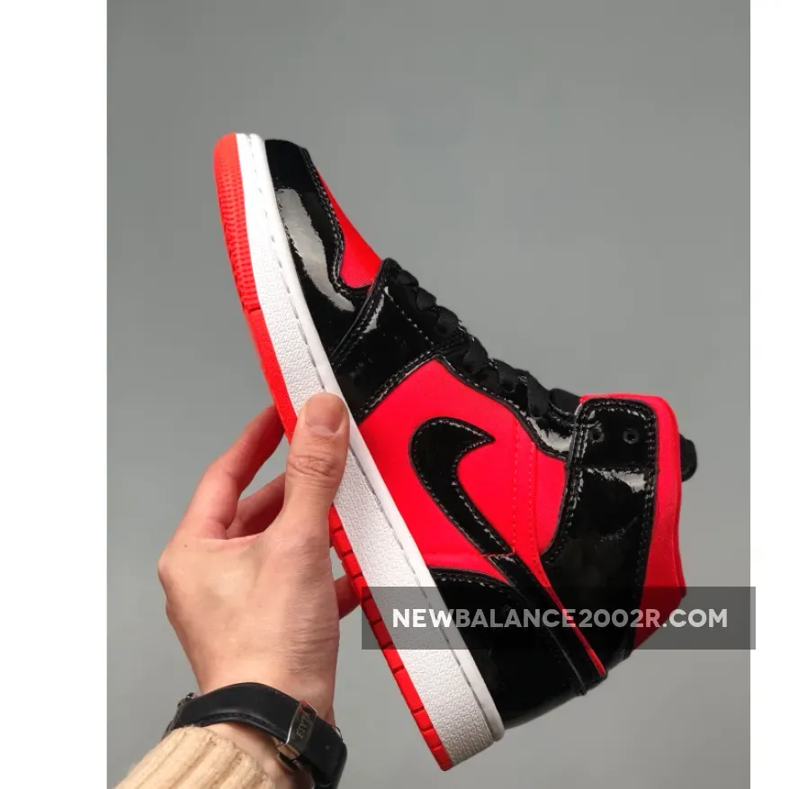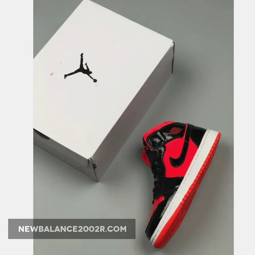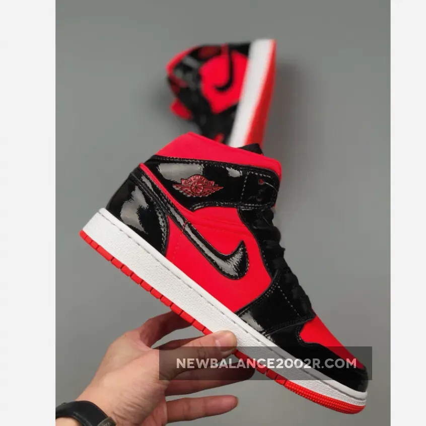Smart color combo, striking design – Air Jordan 1 Mid Hot Punch/Patent Leather delivers! ? #sneakerhead #Nike #AirJordan1