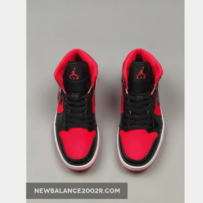 The womens Jordan 1 Mid Hot Punch Black (W) features a Bright Crimson and black nylon and patent leather upper with the vibrant crimson tones acting as the base and giving this model its “Hot Punch” name. From there, crimson comes back to mark the accents of the Jordan 1 Mid Hot Punch in the form of “Air Jordan” and “Jumpman” logos and black “Swooshes” complete the design.