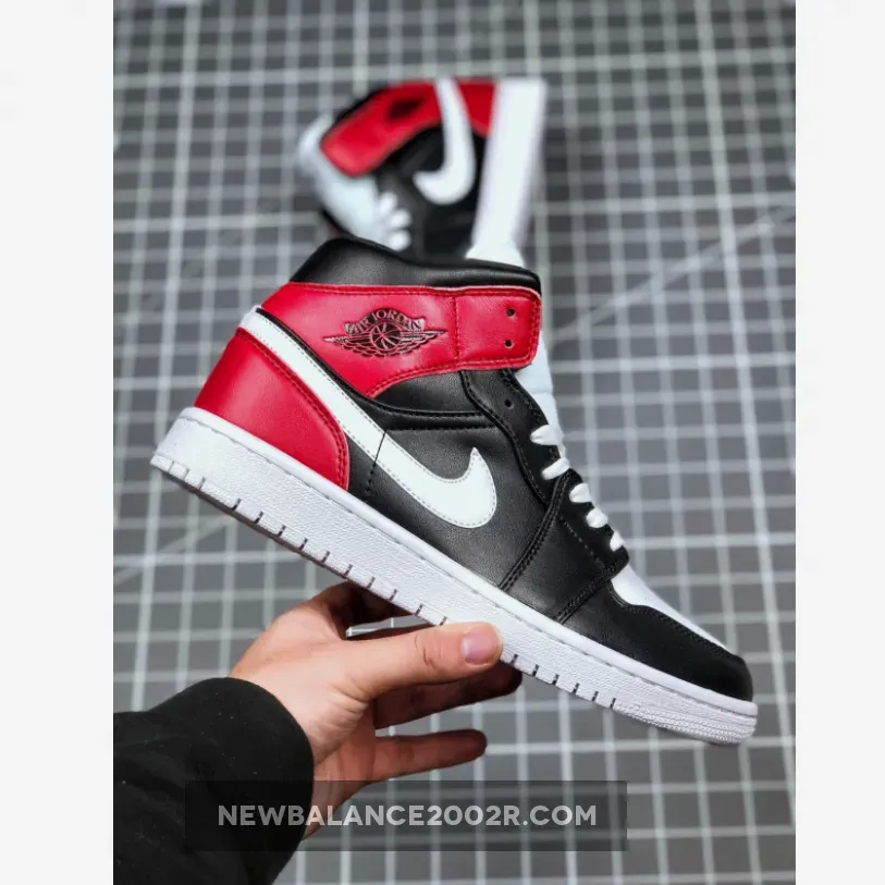 This mid-top Air Jordan 1 comes dressed in a Black, White and Noble Red color combination. Featuring White leather on the toe and Swoosh while Black leather wraps the toe, side panels, within the Wings branding and top of the ankle. Noble Red then wraps the heel while White covers the tongue, laces, midsole and rubber outsole which completes the look.