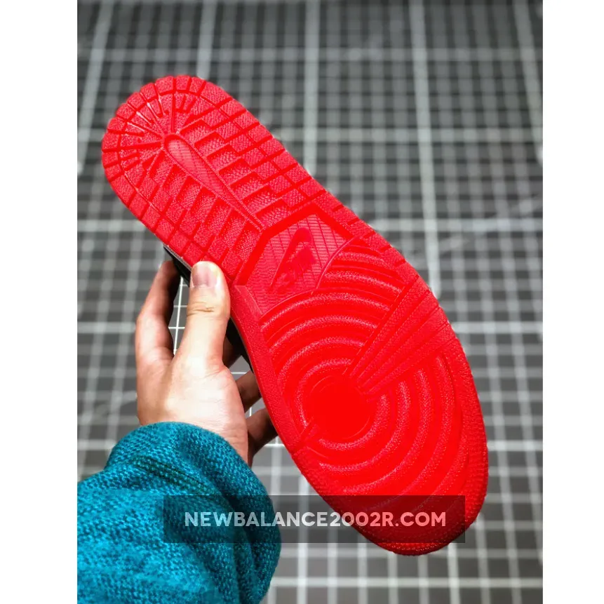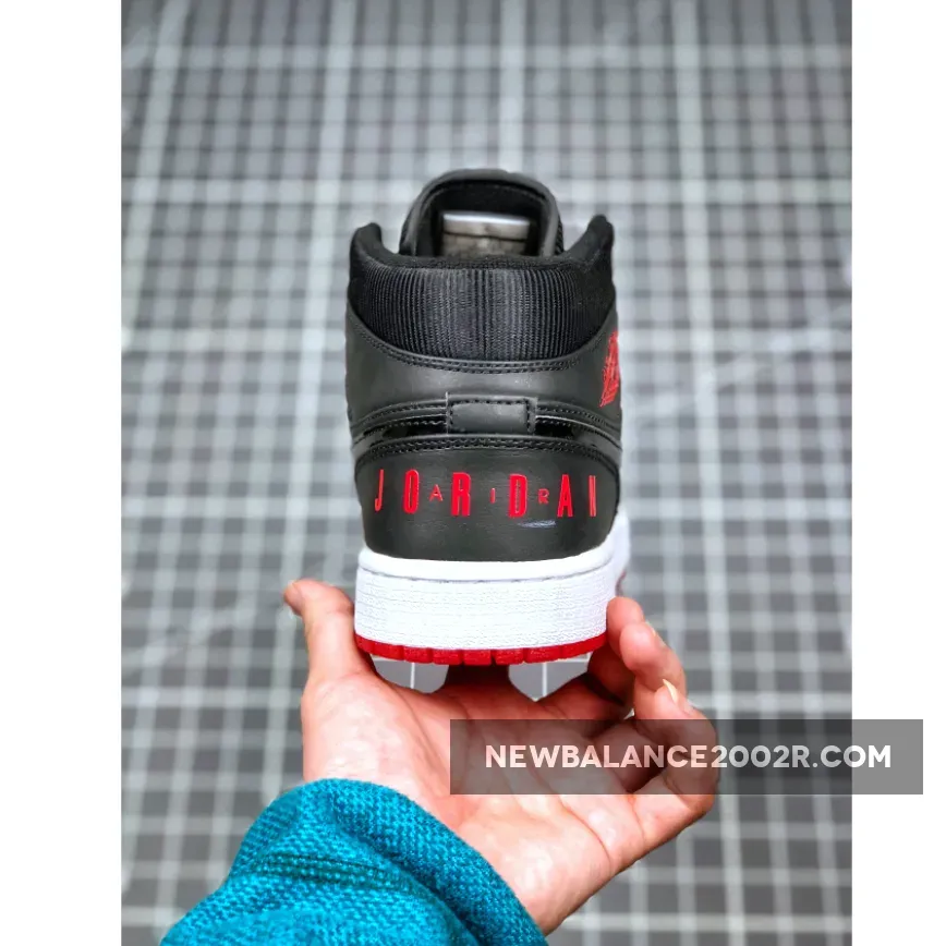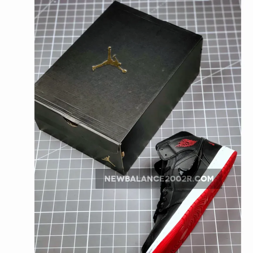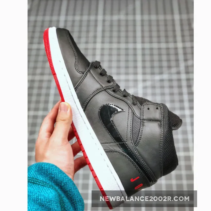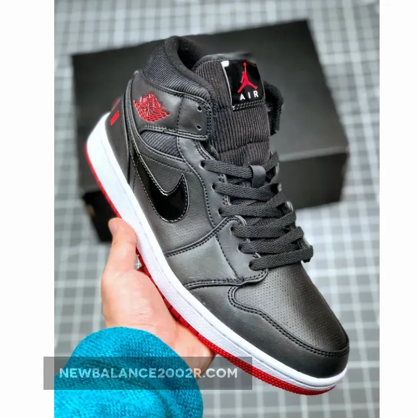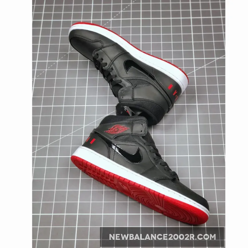 This Air Jordan 1 Mid features a Black leather and rubber mesh upper with a Black patent leather Nike Swoosh on the sides. University Red accents covers the tongue, insole, Wings logo, classic “Air Jordan” branding on the heels, and translucent outsole. White appears on the “AIR” branding of the tongues as well as used on the midsole.