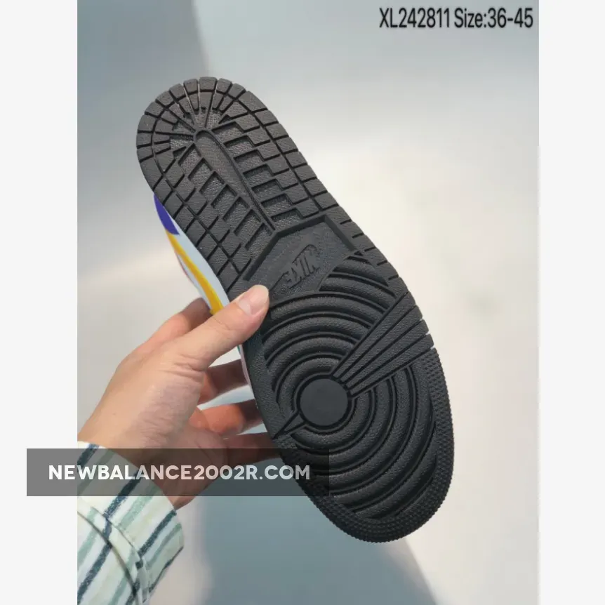 The Air Jordan 1 Mid ‘Multi-Color’ showcases a design that borrows from Nike’s ‘What The’ concept, bringing together clashing hues to accent a classic Chicago-inspired foundation. The latter is readily seen on the toe and collar, both rendered in black and red. A white leather quarter panel, overlaid with an orange leather Swoosh, is flanked by contrasting pops of Turbo Green and purple.