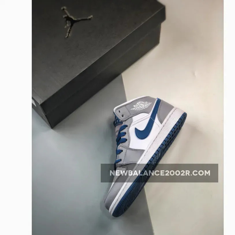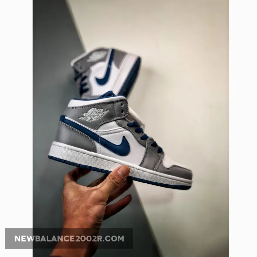 Quality material & classic color combo ?. Air Jordan 1 Mid True Blue is a must-have for any sneakerhead! #AJ1Mid #TrueBlue #Sneakers ?.