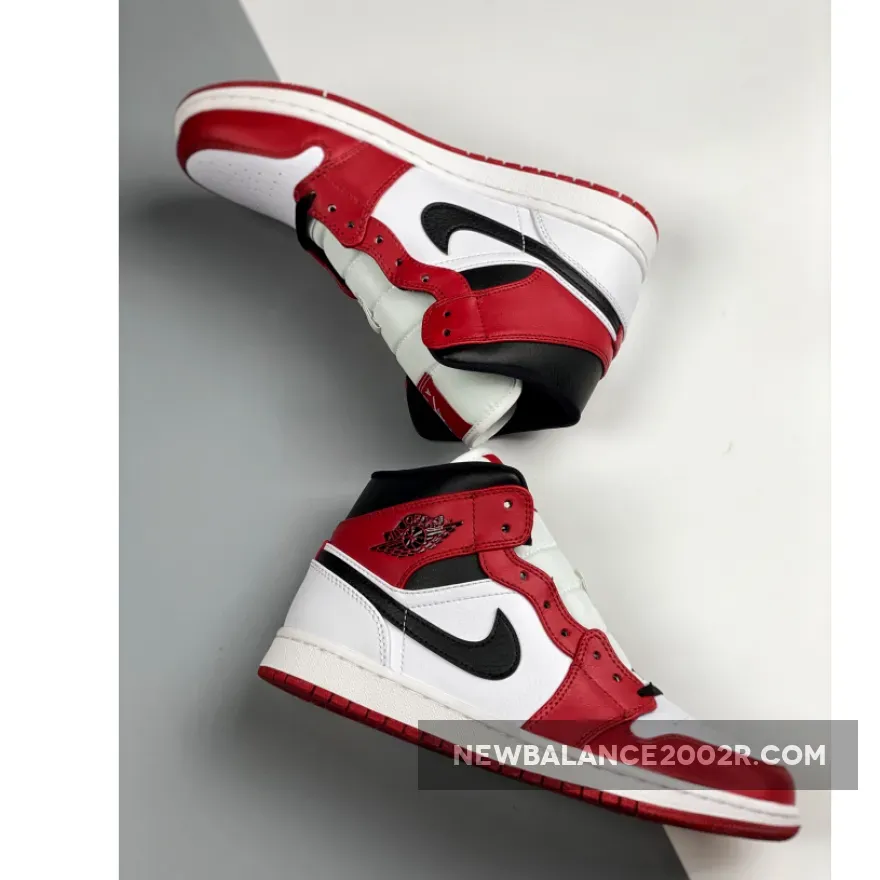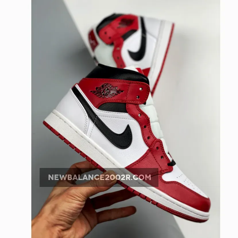 Dressed in a familiar “Chicago” color blocking that mixes White, Gym Red, and Black. This mid-top Air Jordan 1 sports a White leather base with Red leather overlays paired with Black covering the ankle collar, laces, and Swoosh logo. A White midsole atop a Red rubber outsole completes the design.