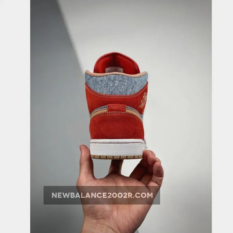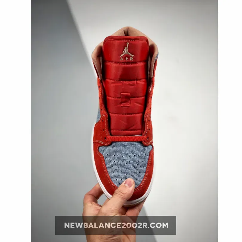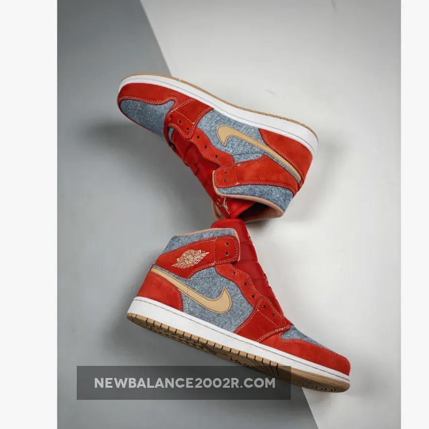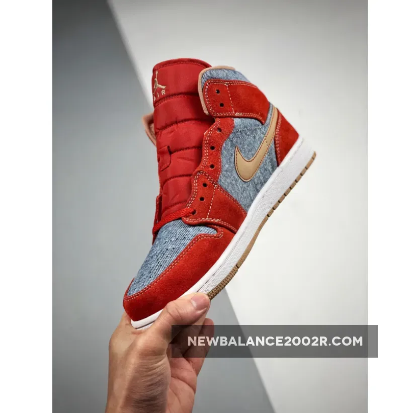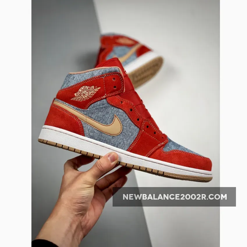 This offering of the mid-top Air Jordan 1 features a light denim upper paired with Red suede overlays, tongues, and laces. Other details includes Tan Swooshes, Jumpman tongue branding, Wings logo, and liner. Finishing off the design is a White midsole atop a Gum rubber outsole.