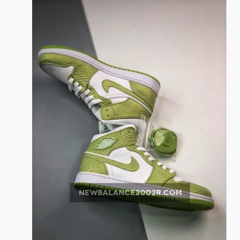Air Jordan 1 Mid Green Python strikes the perfect balance between boldness and wearability. It will easily match many outfits, but at the same time, the pair’s striking design won’t blend into the background. The pair’s smooth white leather base ensures that the lime green overlays featuring a chiselled snakeskin pattern will take the spotlight and surely turn heads. It’s truly a unique pick that’s one for the books.