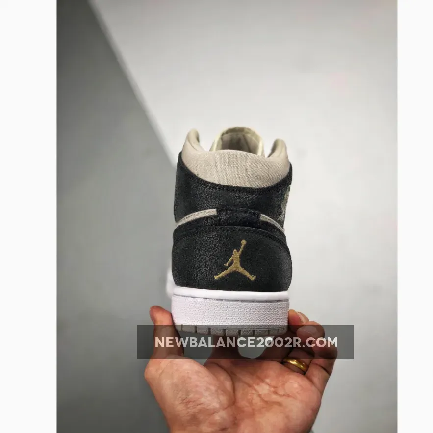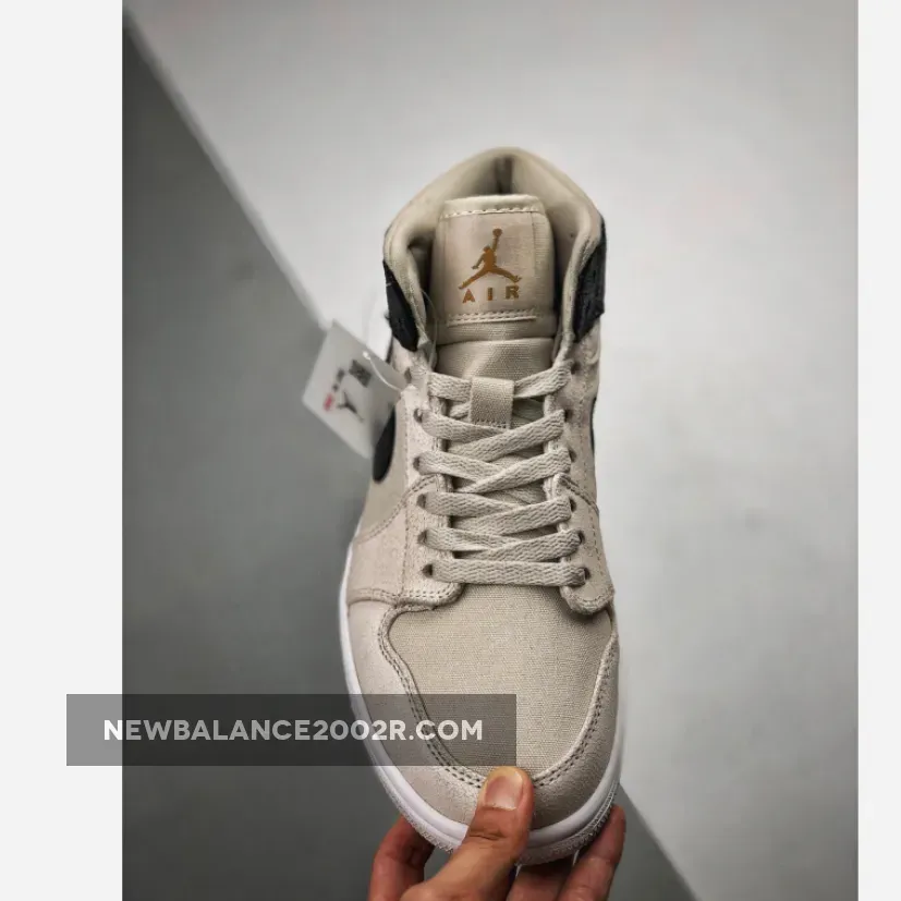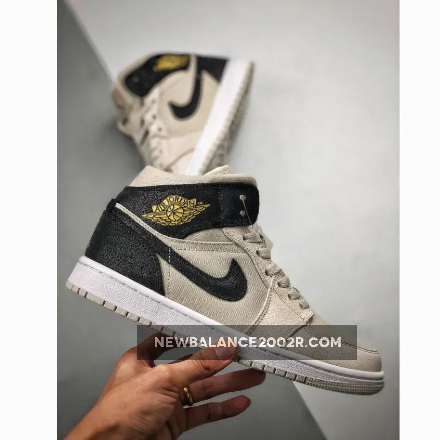 Being specific, this Air Jordan 1 comes dressed in a Light Bone, Metallic Gold and Black color theme. As for materials, we have canvas used across the base while suede lands on the overlays and Nike Swoosh. Across the heel and Swoosh is Black while Light Bone lands on the collar, tongue, laces and base. Added for a premium look is Metallic Gold which is applied to the Wings and Jumpman branding. Finishing the look is White on the midsole and Light Bone on the outsole.