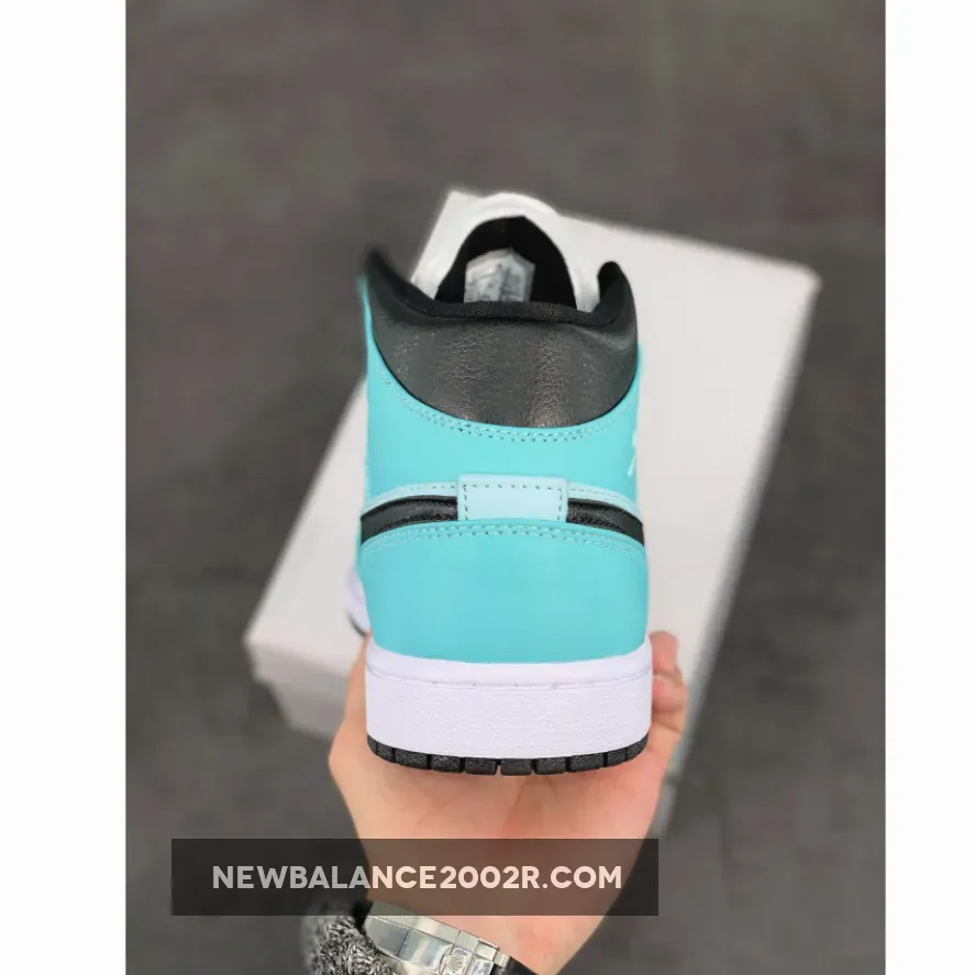 Dressed in a Light Dew, Black, Teal Tint, and White color scheme. This mid-top Air Jordan 1 comes constructed in a leather build featuring Black on the toe, Swooshes, collars, liner, Jumpman logos and rubber outsole while Teal hues dress the rest of the shoe. White laces, tongues, and midsole completes the design.