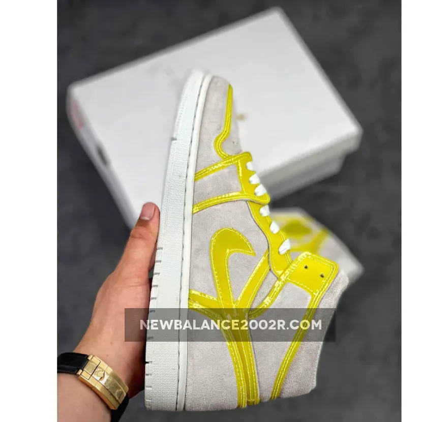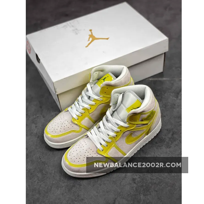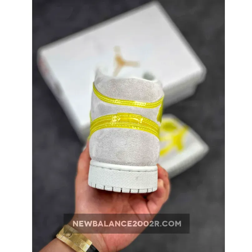 This offering of the Air Jordan 1 Mid features an Off-White suede upper detailed with Opti Yellow TPU translucent overlays that extends onto the Wings and tongue labels. Yellow continues on the insoles completed with crips White laces and rubber soles.
