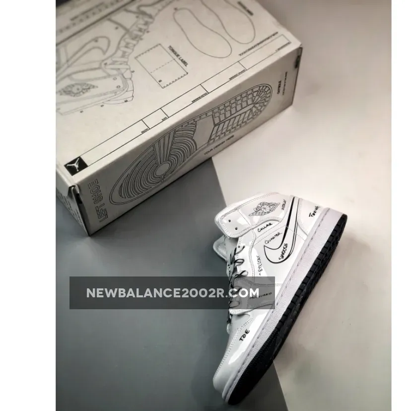 Ready for a lesson in sneaker terminology? You’ll get it with the new and educational Air Jordan 1 Mid GS Sneaker School. This “Sneaker School” AJ1 makes things clean and simple, all the better to label the parts of the shoe. The upper is in a smooth white leather from heel to toe. The striking feature of this pair are the labels in a handwritten font for all the parts of the shoe, as if someone took a black permanent marker and diagrammed the parts of the shoe. Even the signature Swooshes on medial and the lateral side are neatly drawn on, complete with shadowing and 2D details, and labelled. The rubber midsole is all white and has the word “cupsole” written at the, you guessed it, the cupsole area on the lateral heel. A black rubber outsole rounds off the black-and-white look. Cop the instructive Air Jordan 1 Mid GS Sneaker School on Our Store Supplier app and always be in-the-know when it comes to the newest drops from Air Jordan.