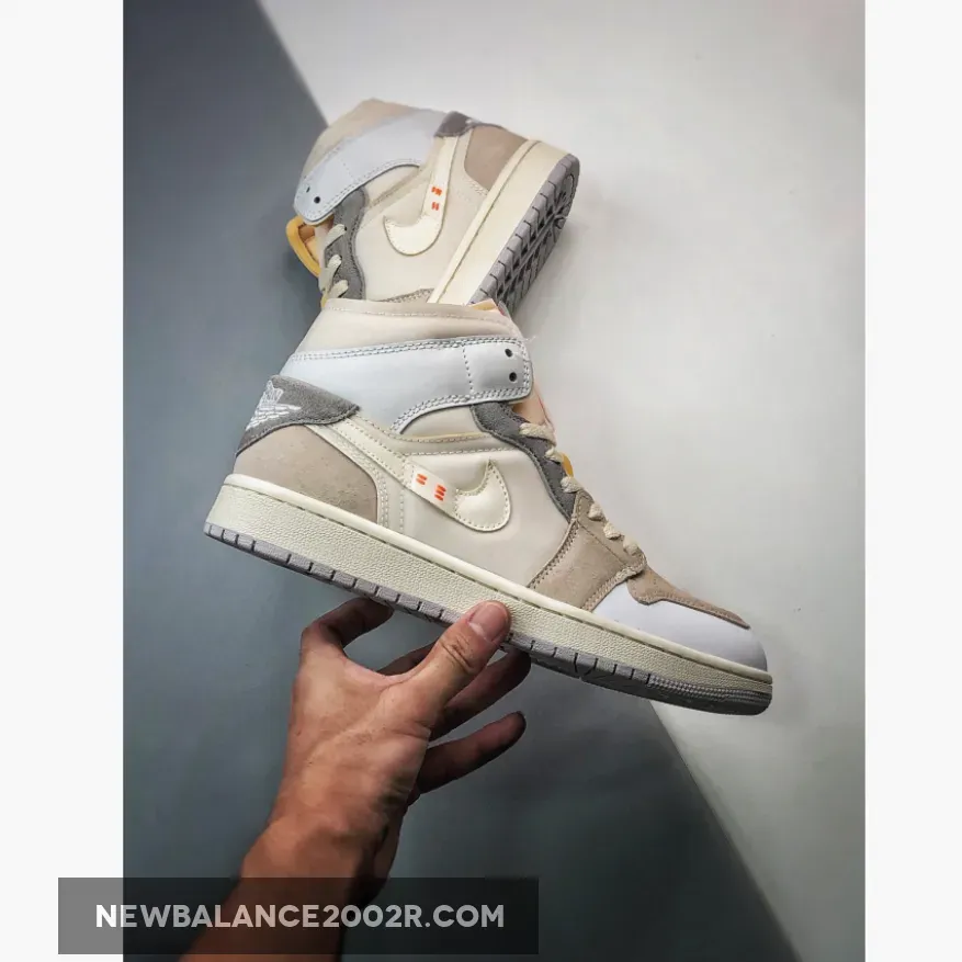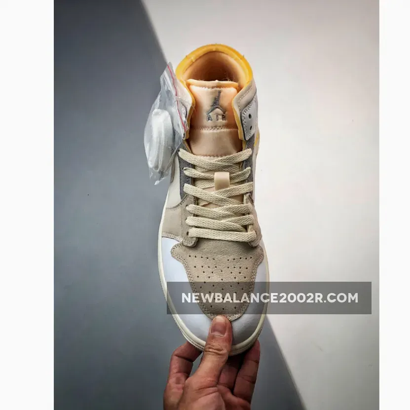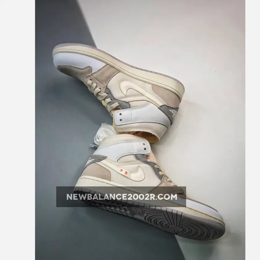 Air Jordan 1 Mid Inside Out showcases a trendy deconstructed look comparable to pieces from coveted Off-White x Nike collaborations such as Off-White x Jordan 1 White. Like most of the pieces made with the late Virgil Abloh, this Air Jordan 1 Mid indulges in a range of premium materials dipped in a clean-cut neutral palette. Furthering the edgy “undone” feel of the pair are the exposed orange stitches on the slim lateral Swooshes, and the exposed tongue foam and ankle padding.