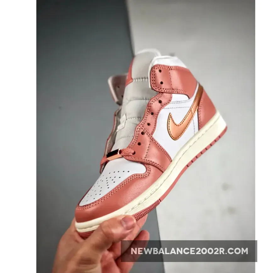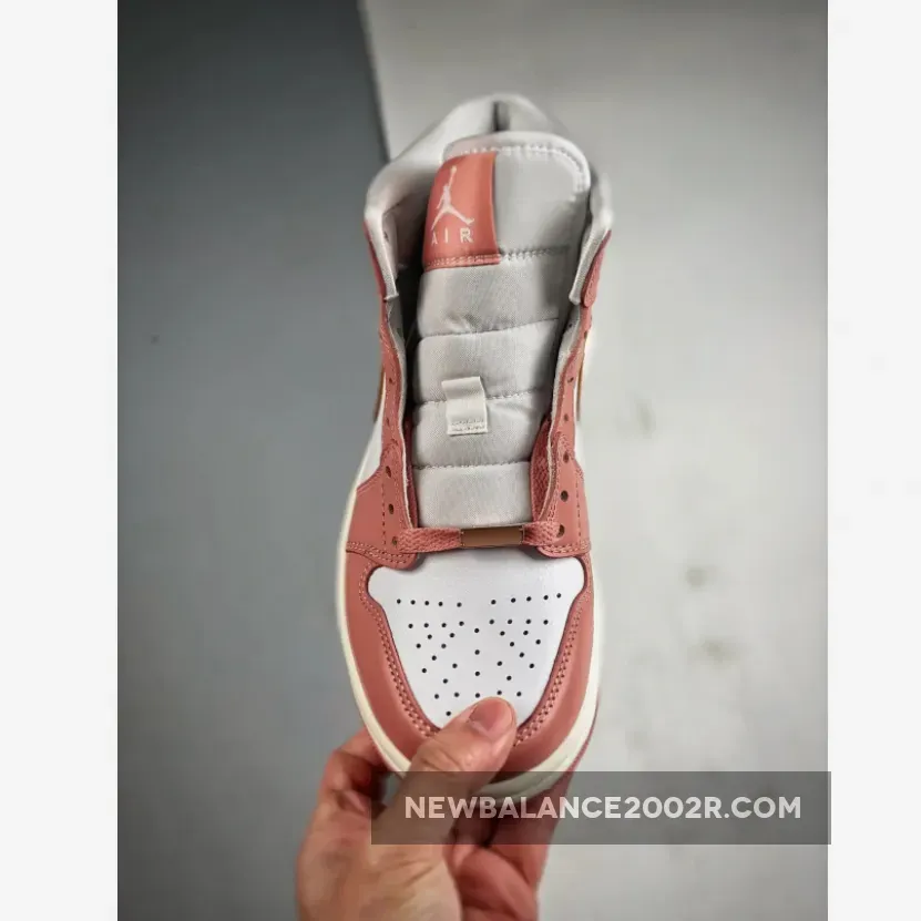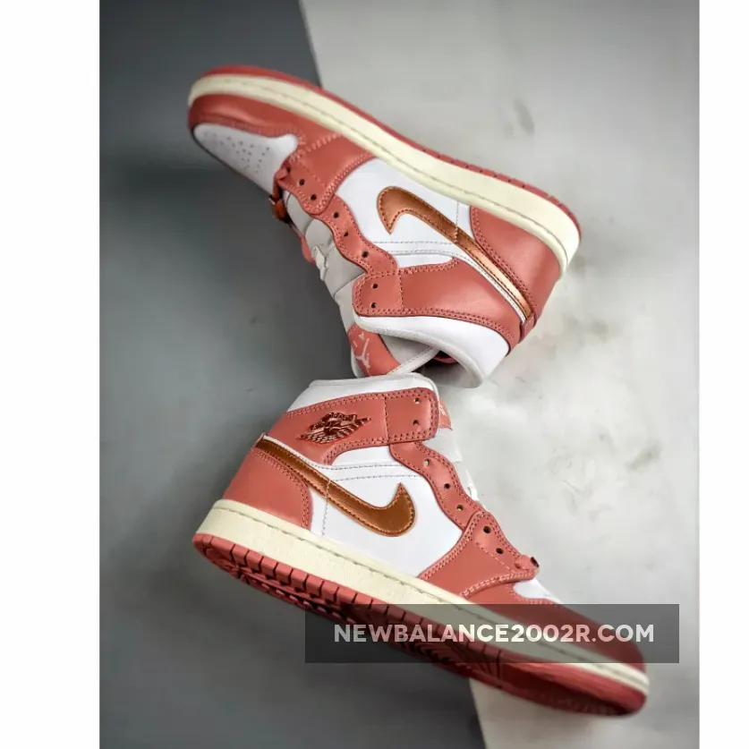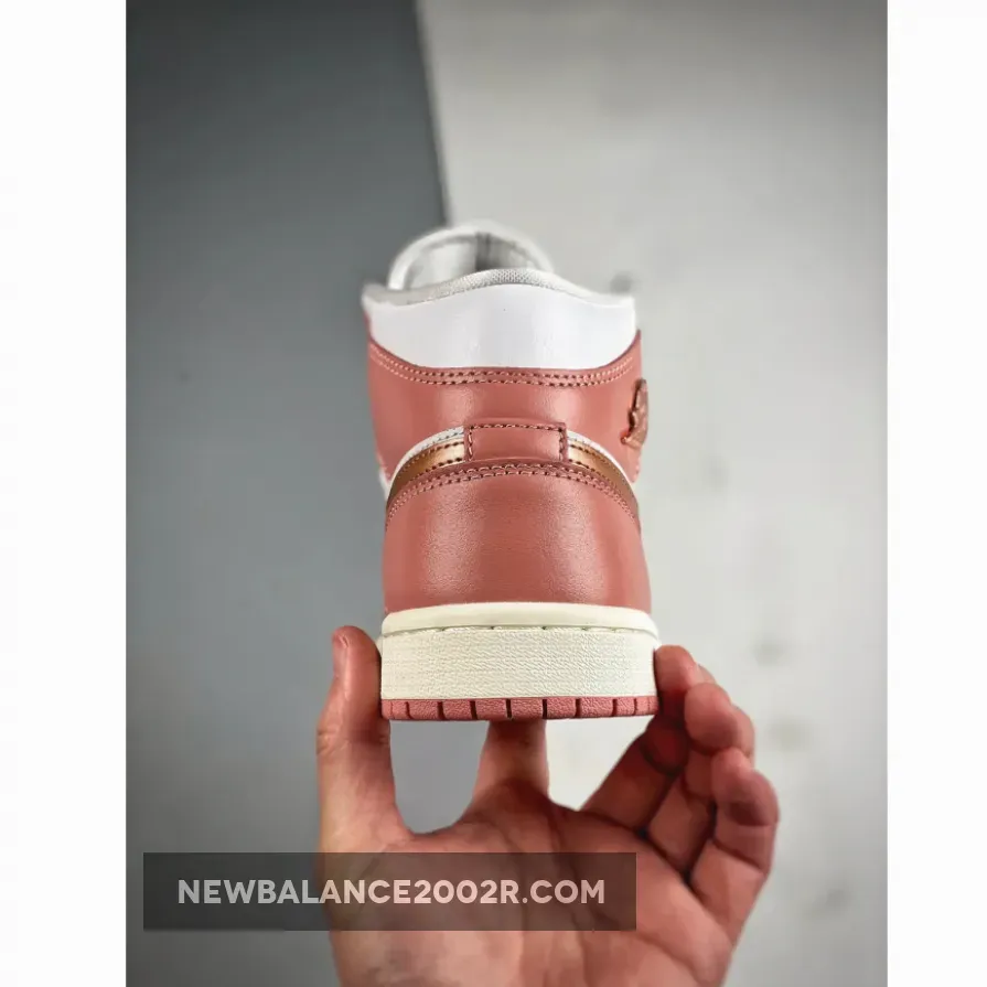 This Air Jordan 1 Mid boasts a sleek, two-tone design in White and Red Stardust. Crafted from full-grain leather with breathable mesh tongues and lining, it showcases a crisp White base adorned with striking Red Stardust accents. Panels around the toe, along the tongue, and across the heel opt for the titular “Red Stardust” tone, while profile swooshes and “Wings” insignia on the lateral ankle flap favor a shimmering rose gold hue. Solid lace dubraes follow suit, but Jumpman logos on the tongue and outsoles revert to the titular color. Elsewhere, the mid-top Air Jordan 1 opts for a “White” midsole that allows for surrounding components to revel in the spotlight.