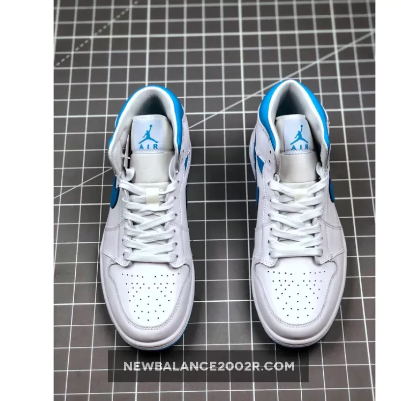 This offering features a White leather upper with signature perforated holes on the toe area. Light Blue accents cover the tongue label, Wings logo, Swooshes, ankle collar, insole and rubber outsole to complete the UNC vibe.