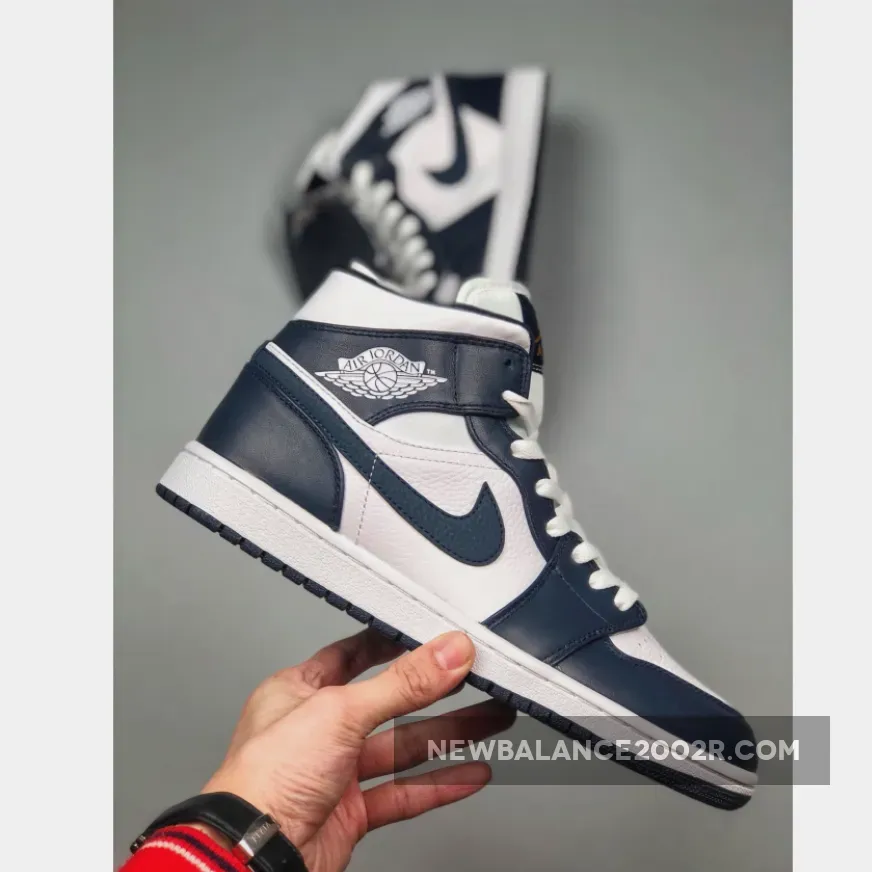 The Nike Air Jordan 1 Mid maintains the iconic look and heritage details of the 1985 original in a lower profile. Issued in August 2019, this edition’s leather upper is split up in Obsidian and white with Swooshes across the sides and signature Wings branding to the ankle. Metallic gold Jumpman branding is applied to the tongue and footbed.