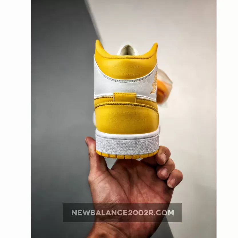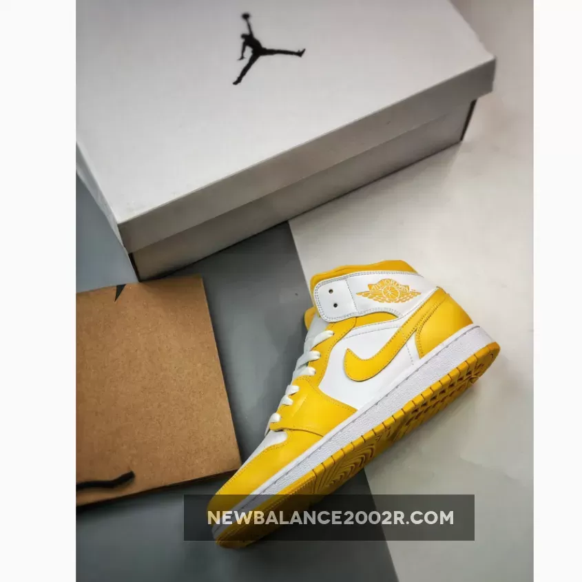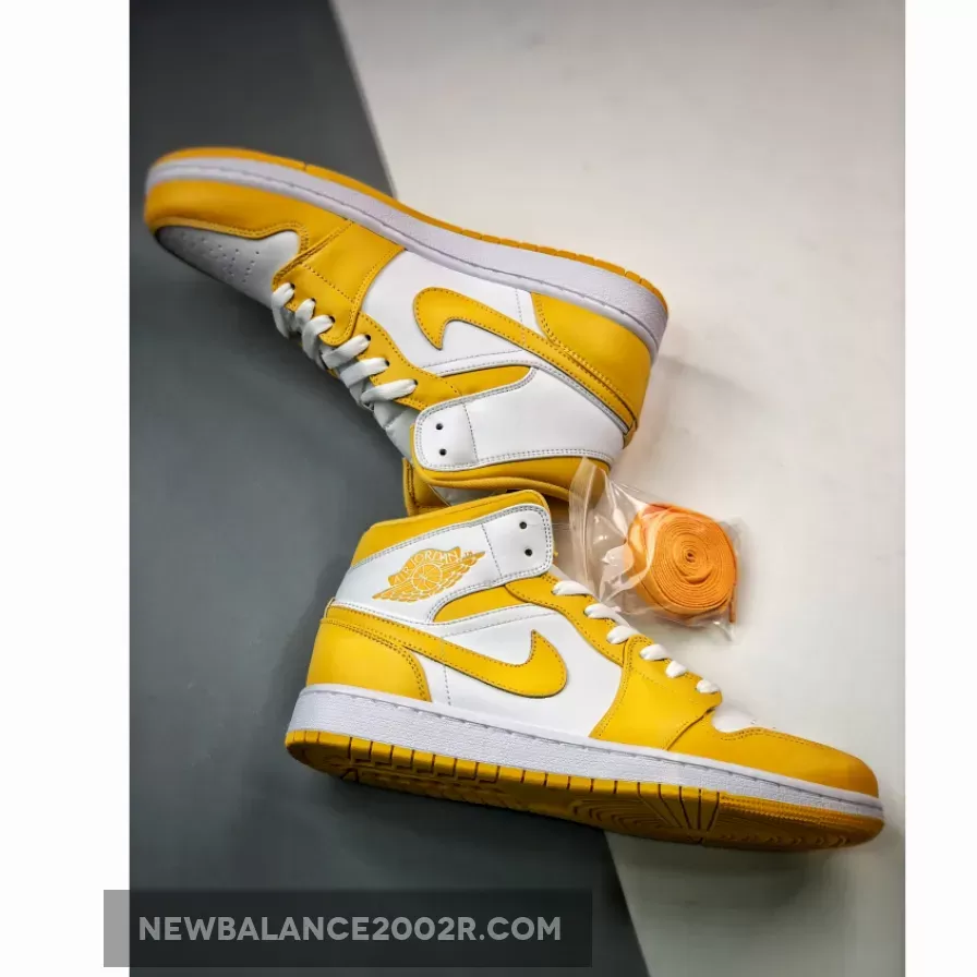 This offering of the mid-top Air Jordan 1 features full leather build with White nylon tongues, laces, and midsole.
