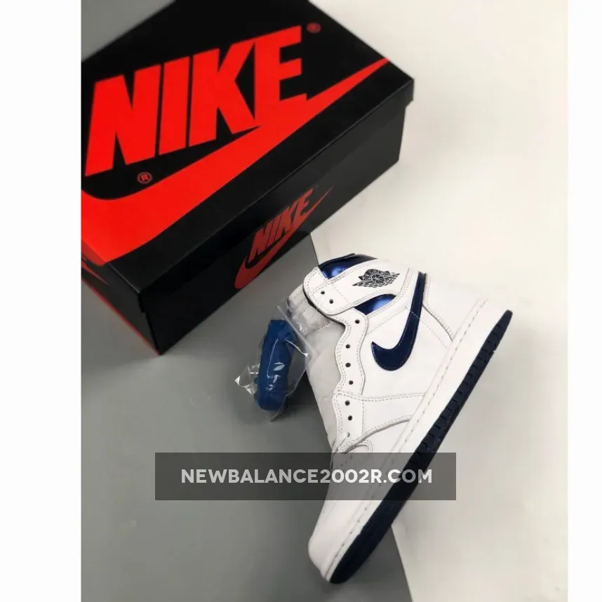 The iconic shoe comes built with a White tumbled and smooth leather upper that includes Metallic Navy accents on the collar, Wings logo, Nike Swoosh, and Nike Air tongue label.