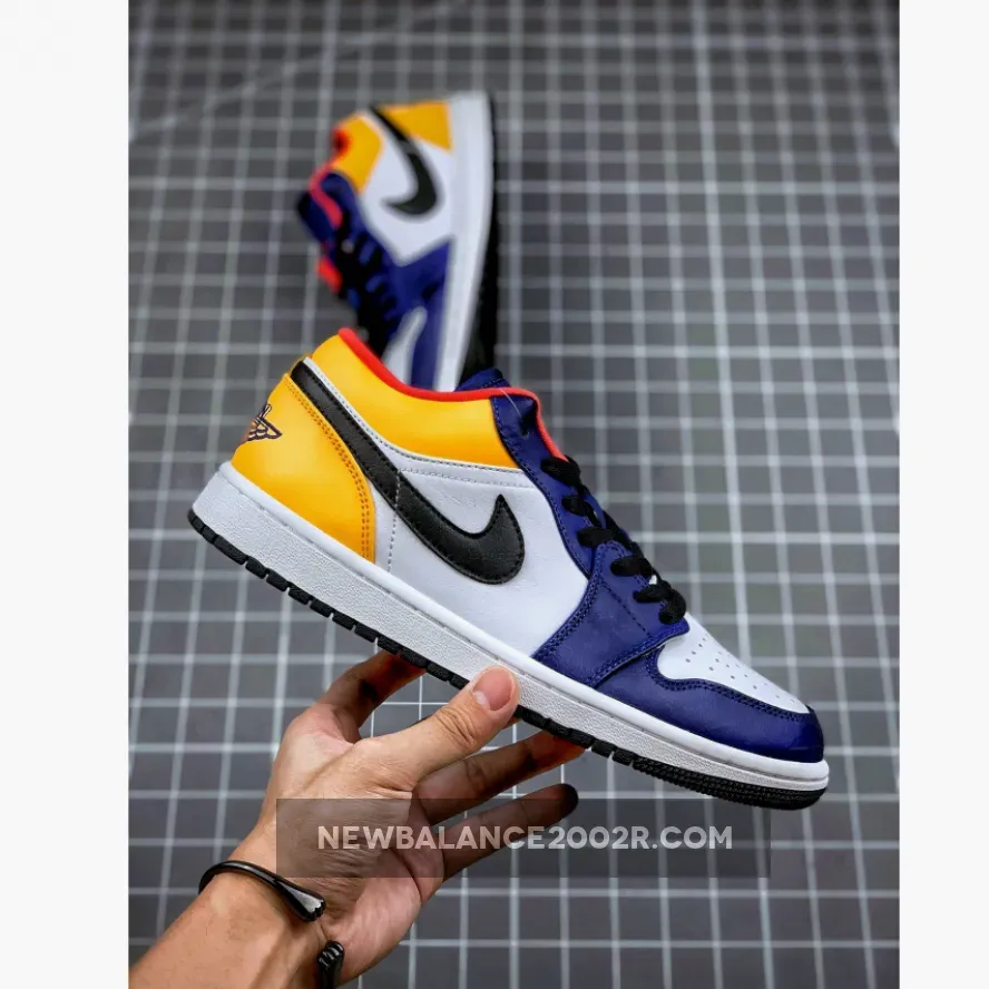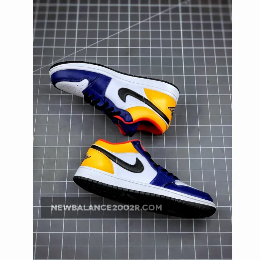 This offering of the low-top Air Jordan 1 features White leather on the toe and sides paired with Royal Blue overlays and nylon tongues while bold Yellow takes care of the rear. Black Swooshes on the sides with matching laces, Orange Jumpman branding and lining atop a White midsole and Black rubber outsole completes the design.