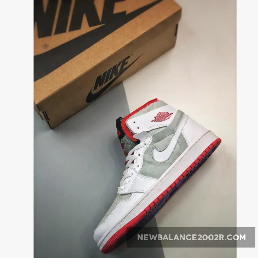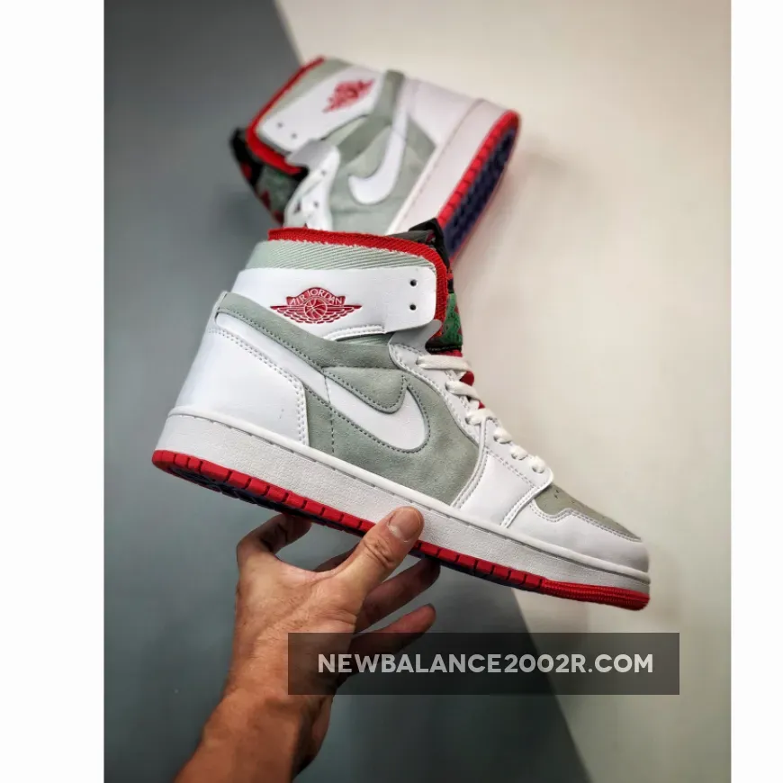 The Air Jordan 1 High Zoom Comfort ‘Hare’ features a familiar design borrowed from an OG Air Jordan 7 colorway of the same name. Inspired by a ‘90s ad campaign that teamed up Michael Jordan with Bugs Bunny, the high-top combines a light grey suede base with white leather overlays at the forefoot and heel. Exposed foam construction is utilized on the collar and tongue, accented with a multicolor print and branded with a woven Zoom Air tag. The white rubber midsole packs a Zoom Air unit in the heel for a comfortable ride. Underfoot, the outsole combines injected EVA in Dark Concord with durable crimson rubber throughout the perimeter.