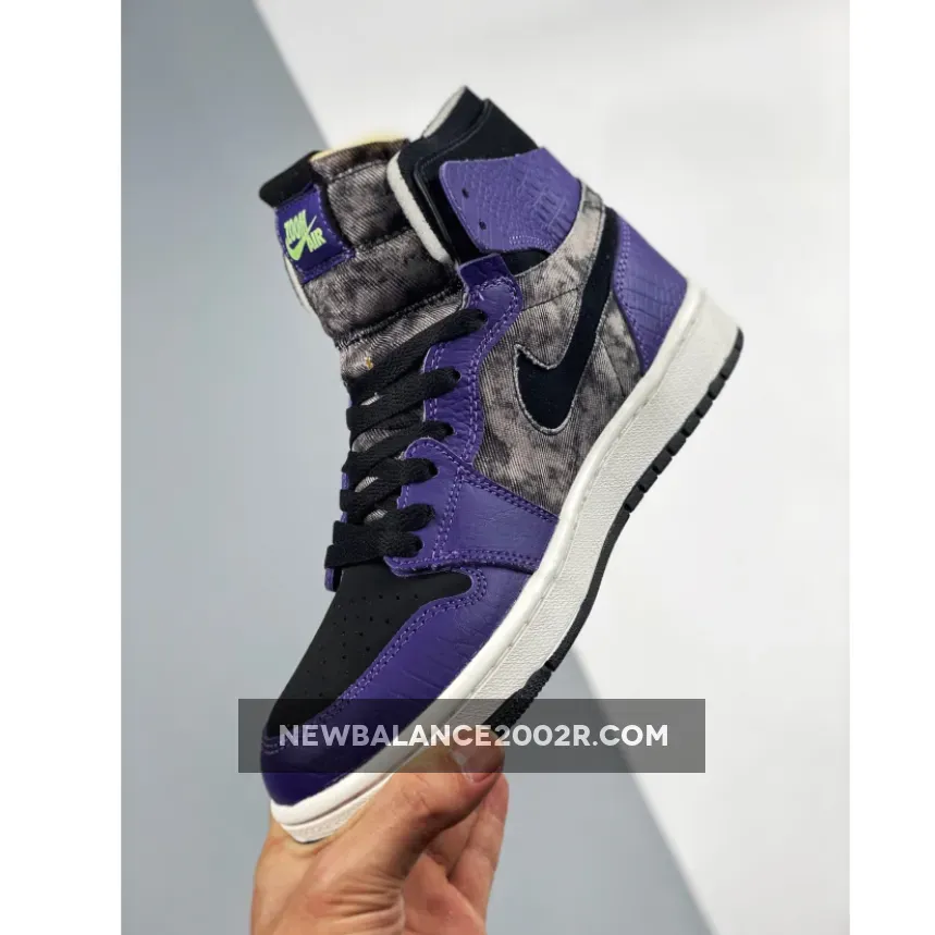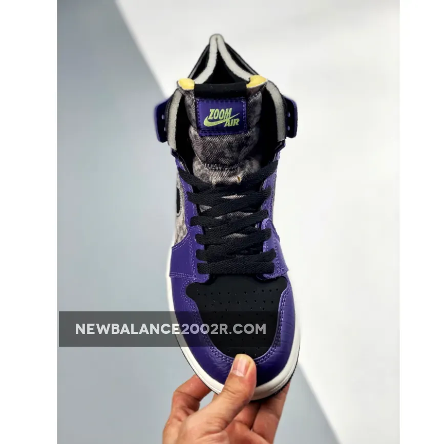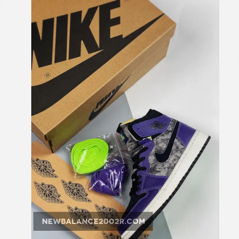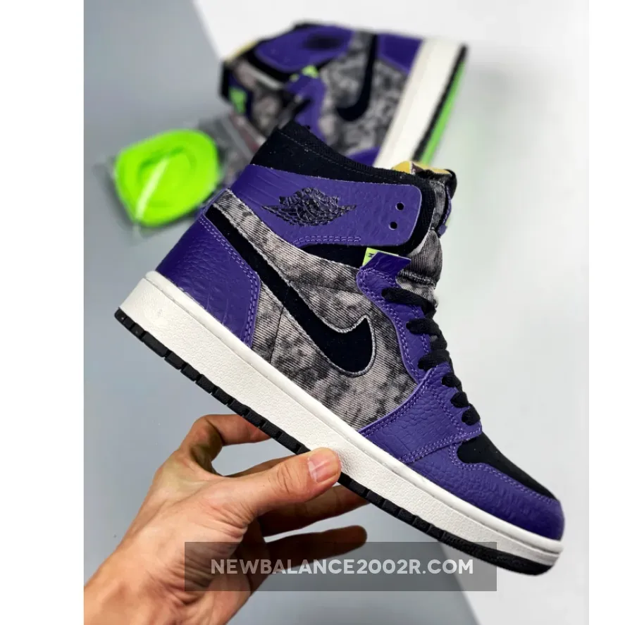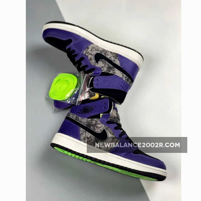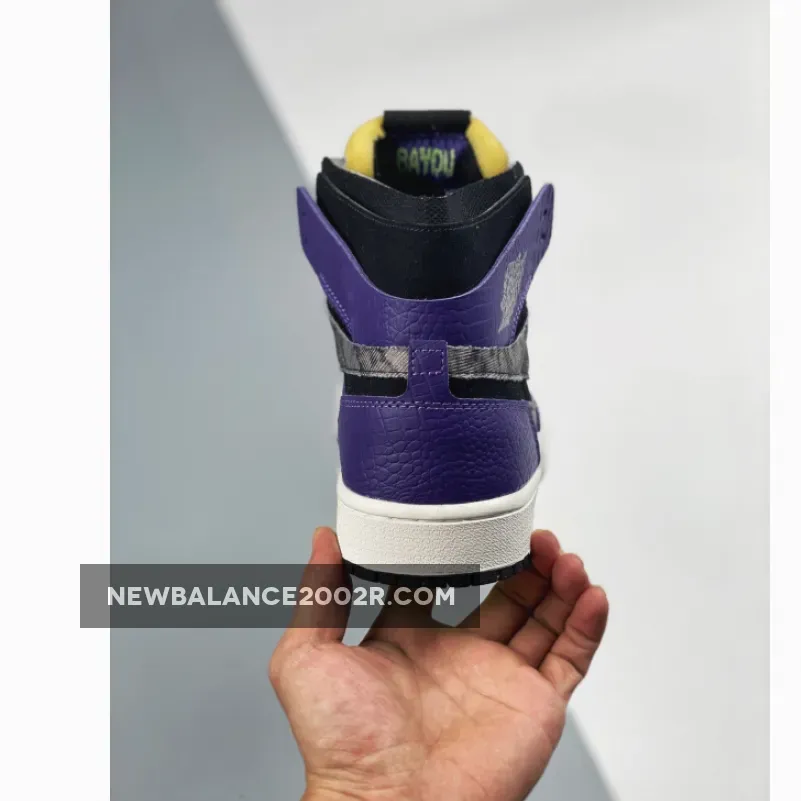 Dressed in a New Orchid, Lime Blast, and Black color scheme. This Air Jordan 1 features a faded mesh fabric on the side panels and tongues with Purple croc skin overlays.