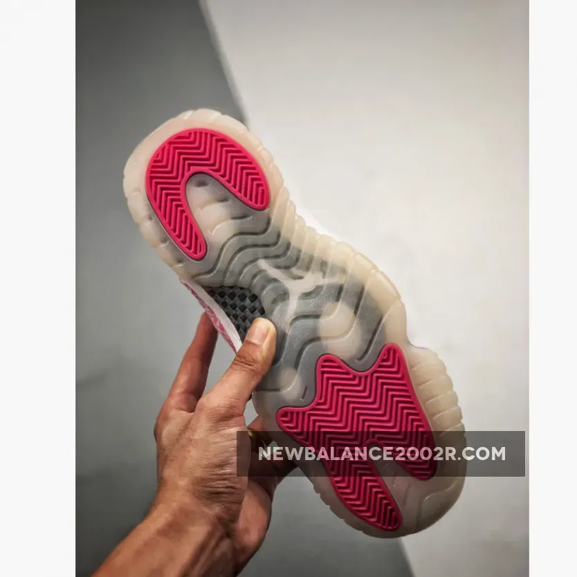 Dressed in a White, Watermelon, and Black color scheme. This Air Jordan 11 Low features a White leather upper with tonal overlays highlighted with a Pink Snakeskin wrapping the mudguard. Other details includes a darker tone of Pink on the inner lining, Jumpman branding, and portions of the outsole. Black appears on the tongue, completed with a milky translucent outsole.