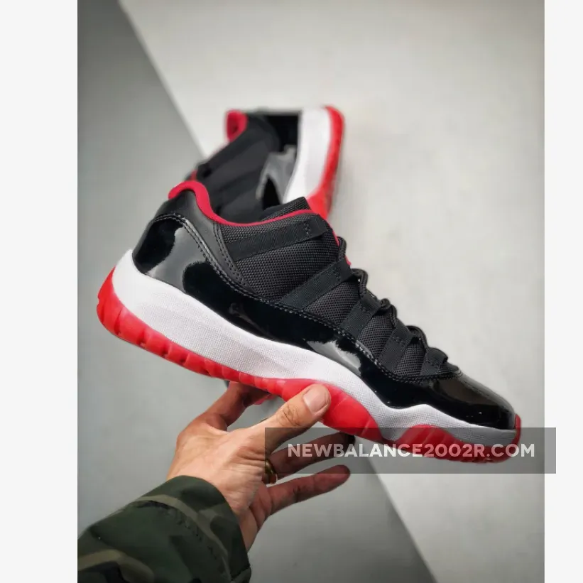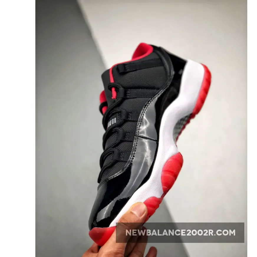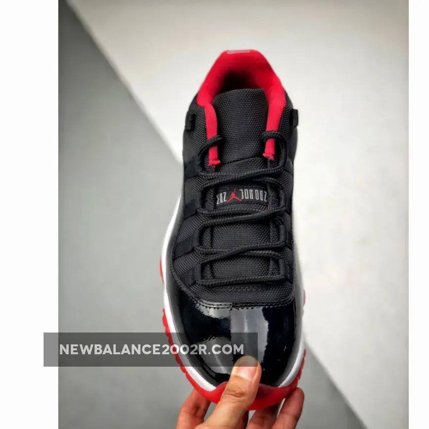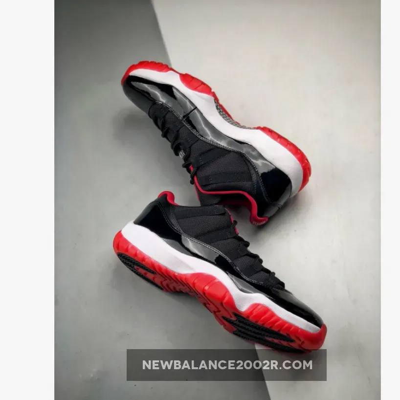 This Air Jordan 11 Retro Low features the iconic Bred-theme having a full Black mesh and leather upper with patent leather overlay on the mudguard sitting top a White midsole and semi-translucent dressed in Red. The shoe is also highlighted with the iconic carbon fiber and True Red interior.